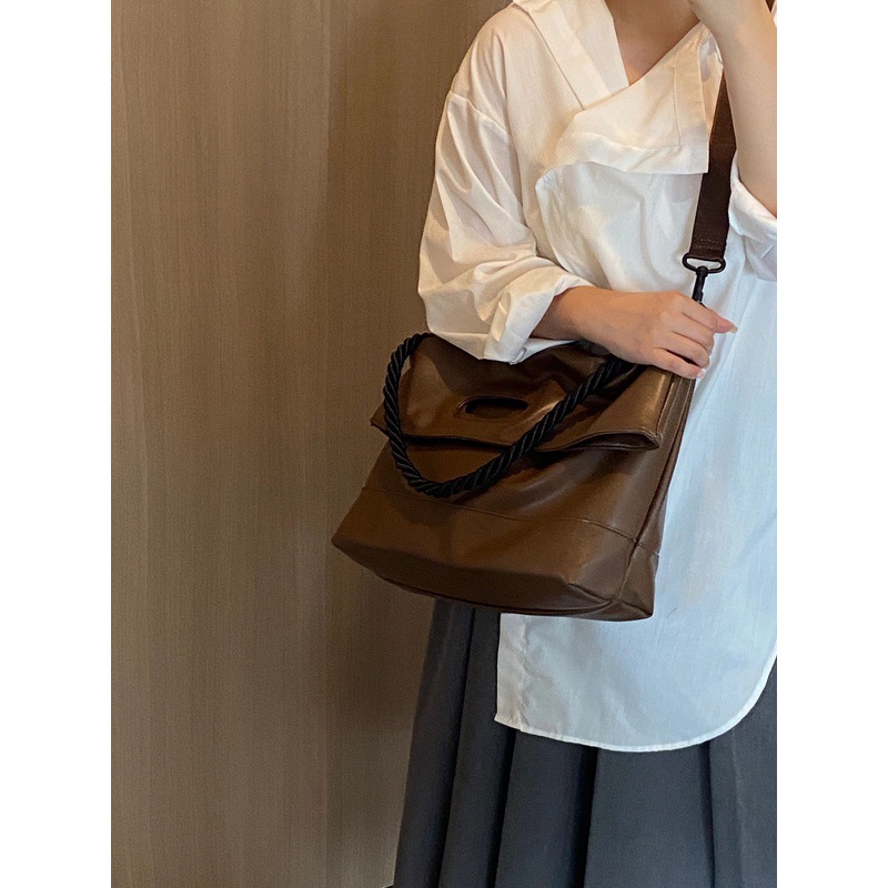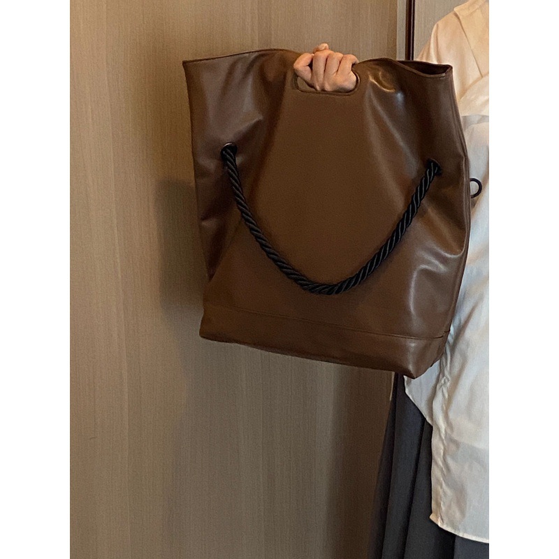 棕色软皮大容量托特包女新款通勤简约大包学生上课单肩斜挎包