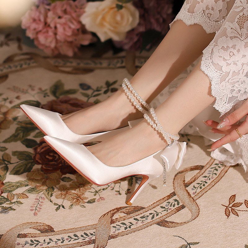 名媛 高跟鞋婚鞋宴会鞋女气质细跟性感尖头小香风白色大码单鞋