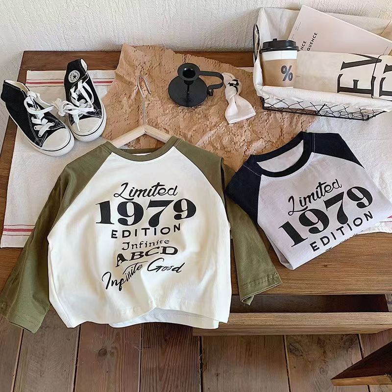 纯棉儿童长袖T恤春秋季新款中小童复古打底衫男宝宝洋气插肩上衣t