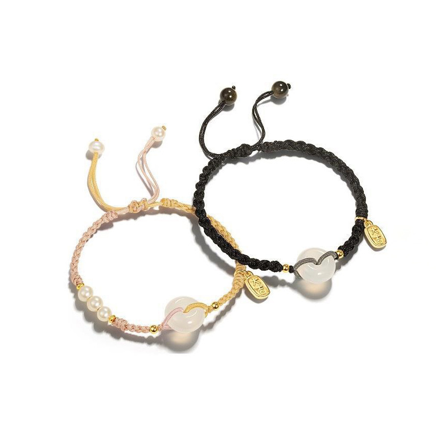 【平安扣】红绳手绳情侣手链男女款白玛瑙珍珠手工编织手链福气