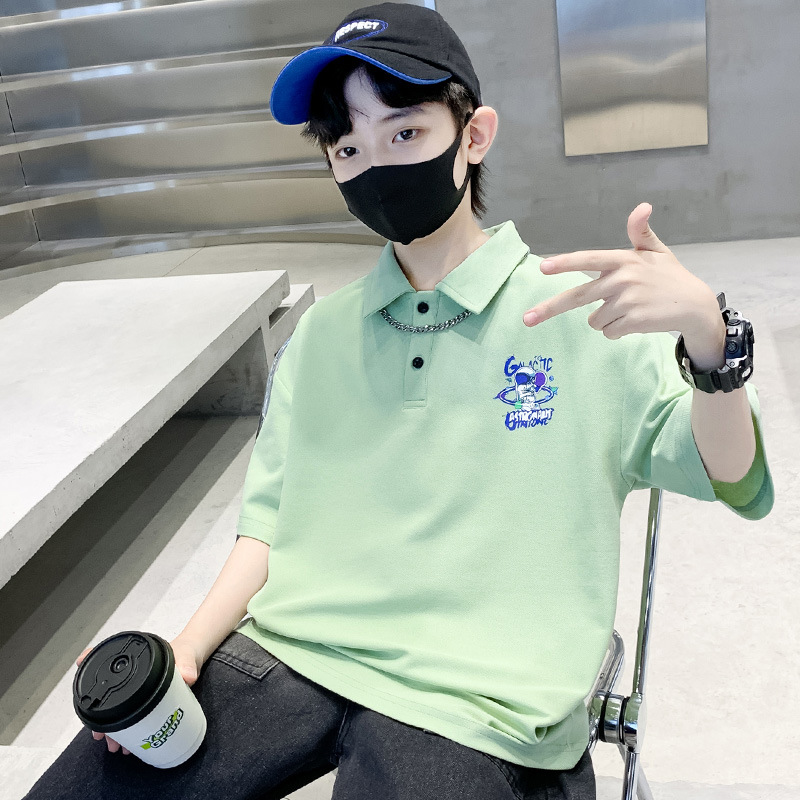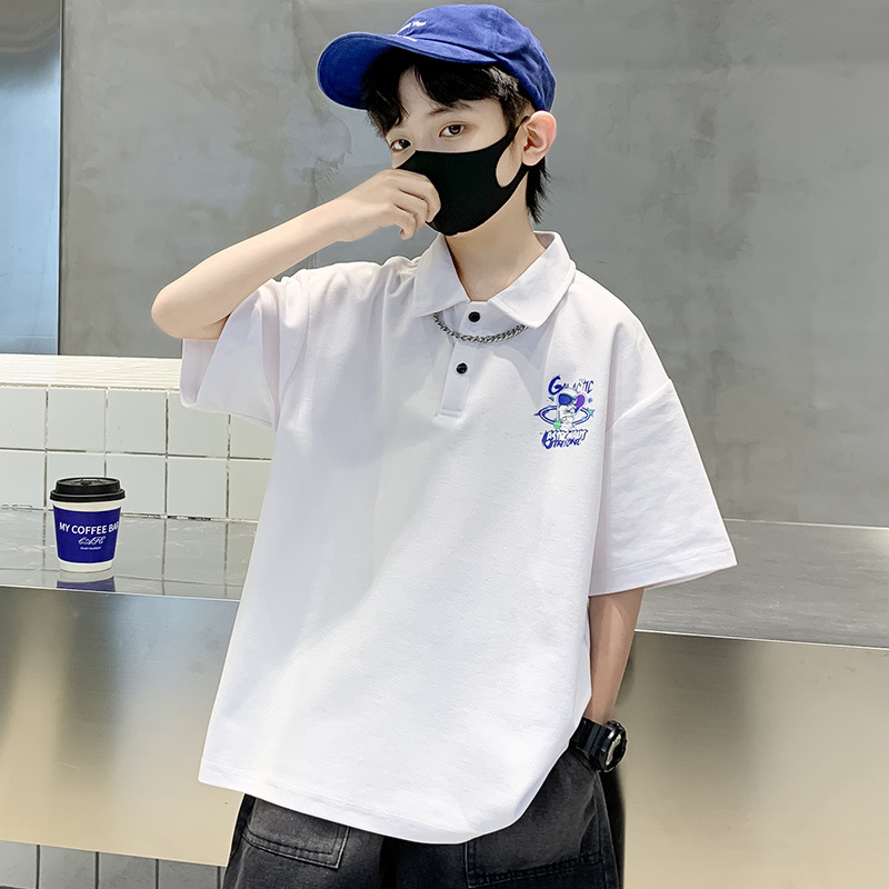 儿童潮酷T恤短袖环形字母印花男童洋气纯棉半袖上衣中大童体恤潮