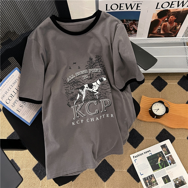 撞色卡通别致短袖T恤夏韩版新款设计感拼接洋气减龄宽松上衣