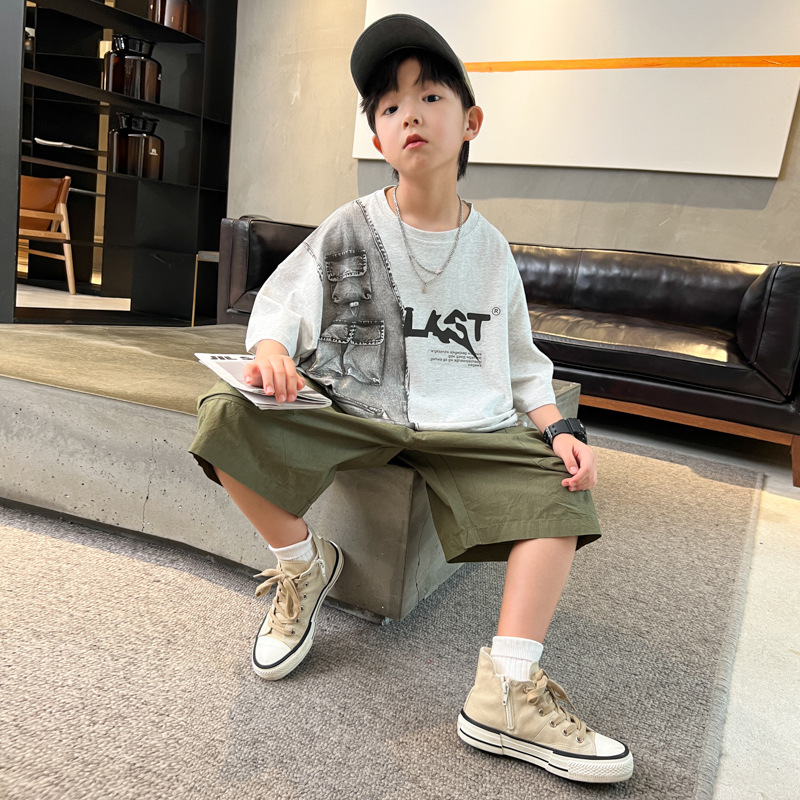 男童夏装套装新款中大童儿童痞帅男孩夏季短袖洋气时髦炸街潮