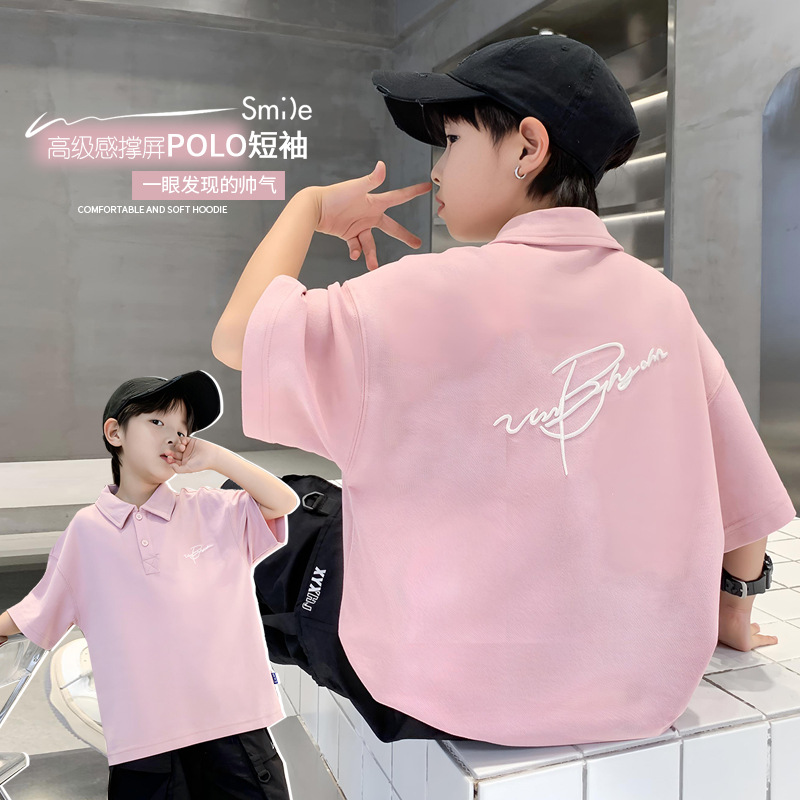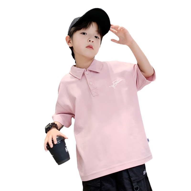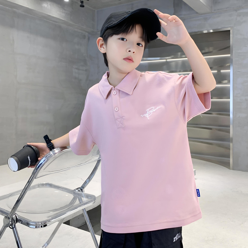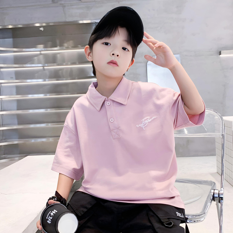 男童夏装纯色英伦POLO短袖t恤新款大儿童夏季上衣帅气宽松潮T