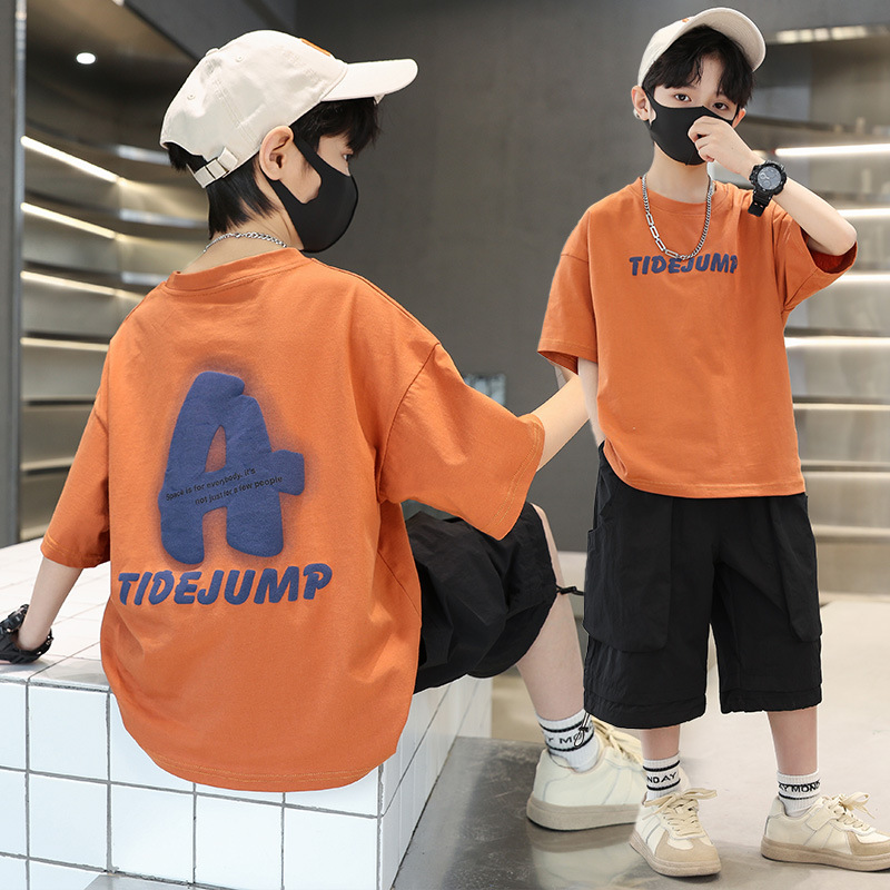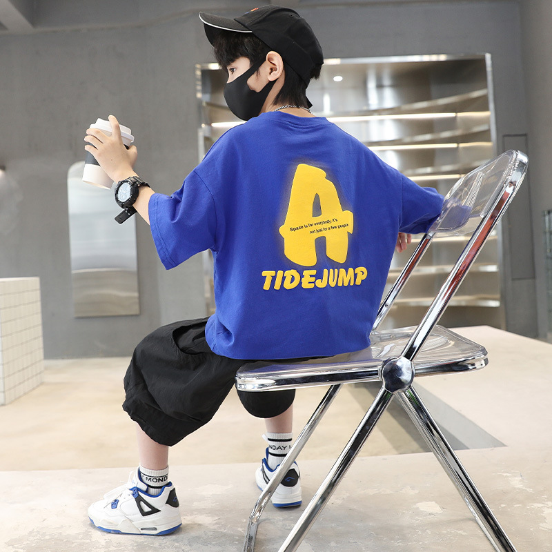 男童夏季短袖T恤儿童时尚潮流字母体恤衫棉质宽松打底衫上衣
