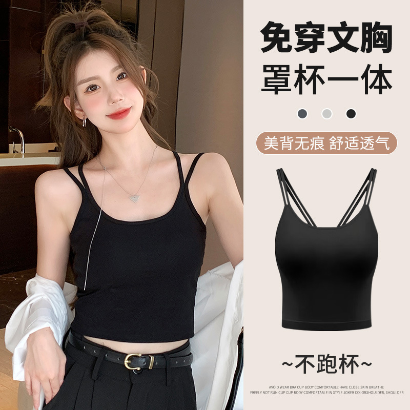 吊带背心女夏季新款外穿内搭纯棉带胸垫一体式打底衫上衣短款