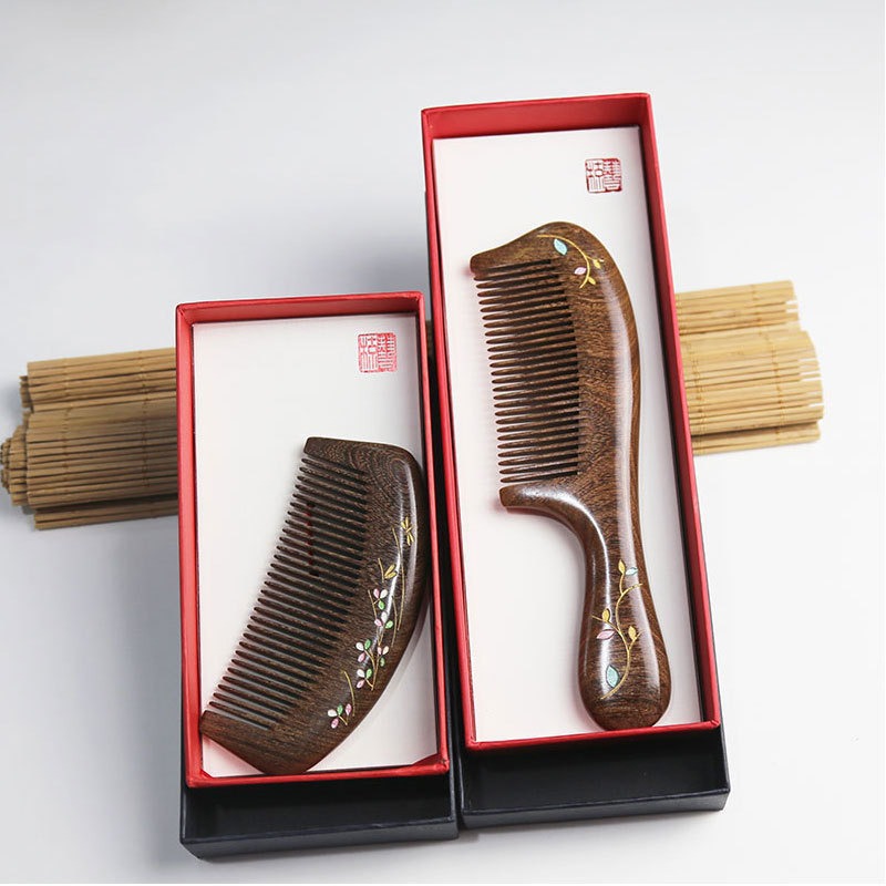 黑金檀彩绘柄梳小月梳礼品梳子手工彩绘礼品礼盒