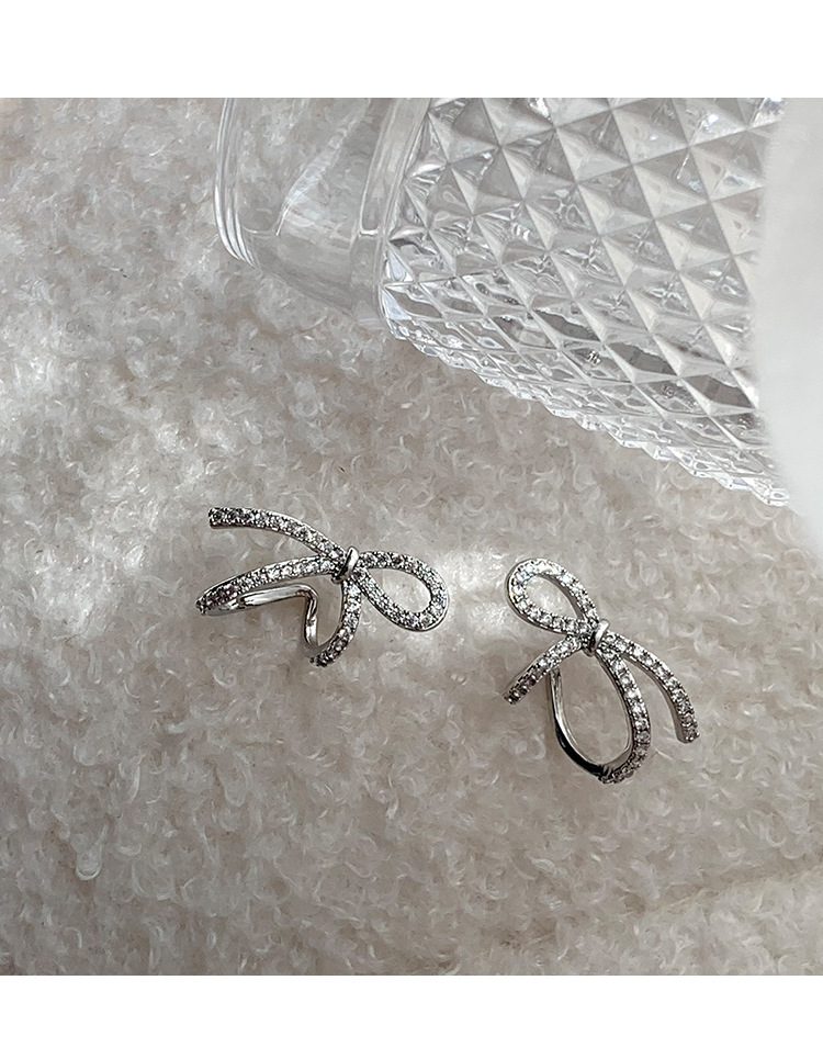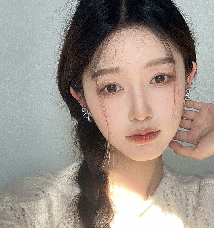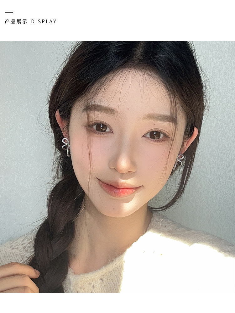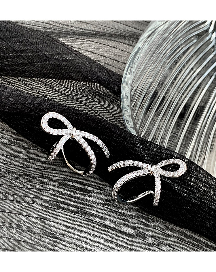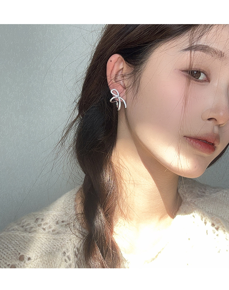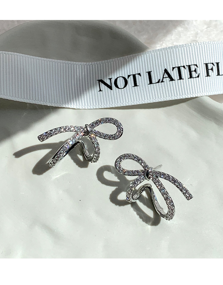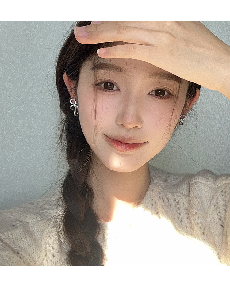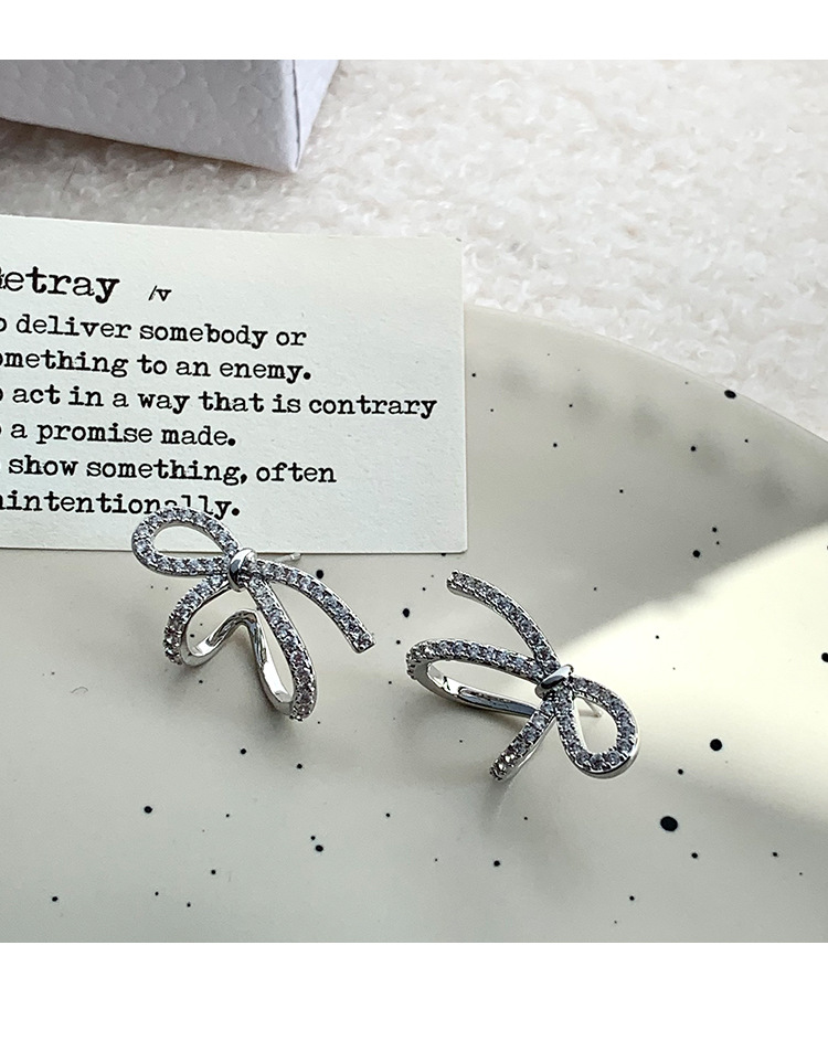 微镶锆石蝴蝶结耳环女轻奢高级感耳钉年新款精致小巧甜美耳饰