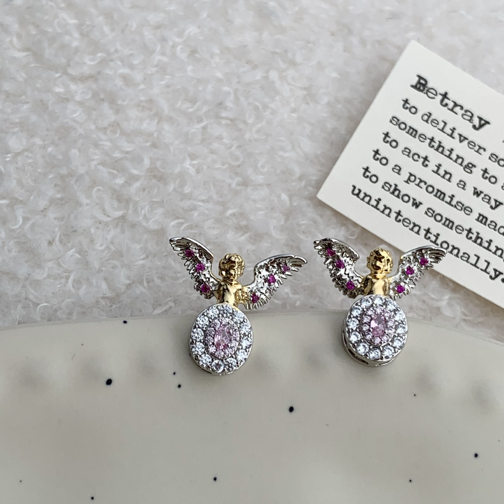 气质轻奢高级感锆石小天使耳钉小众冷淡风闪钻耳环年新款耳饰