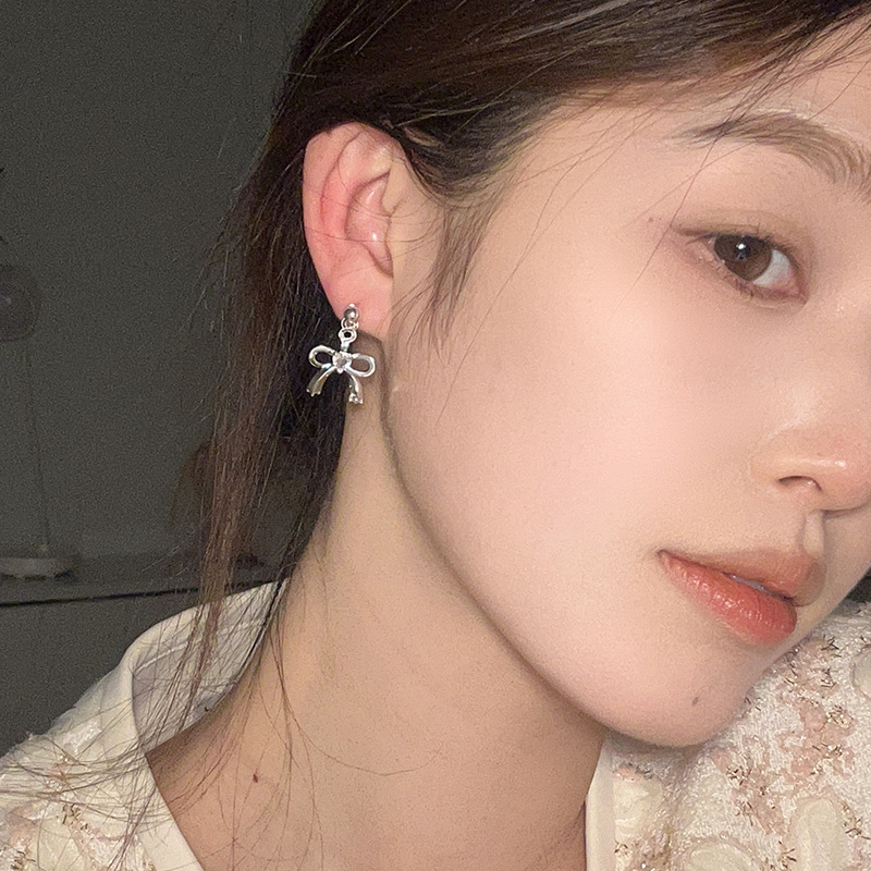 简约小巧气质冷淡风金属蝴蝶结爱心耳环年新款高级感耳钉耳饰