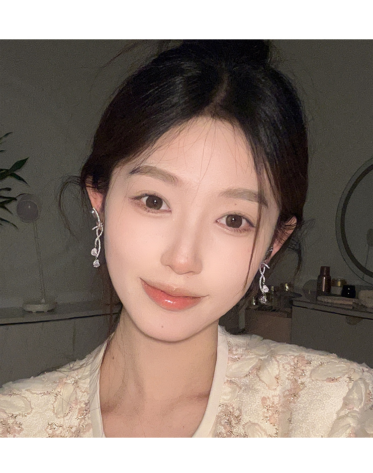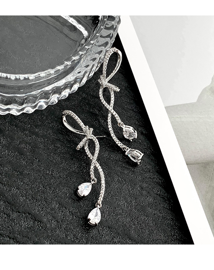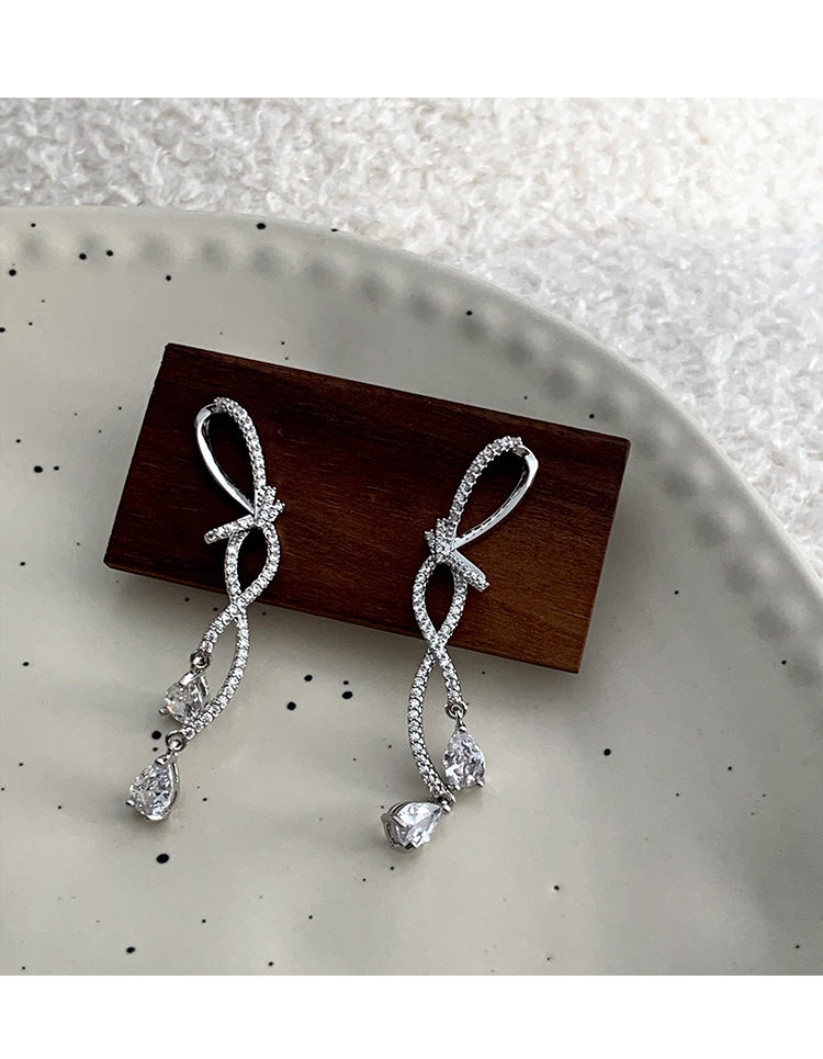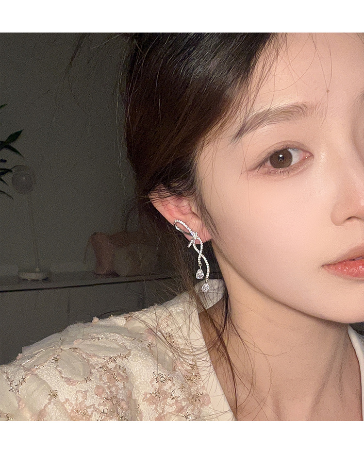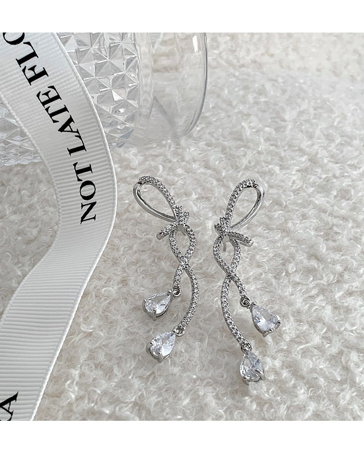 轻奢高级感满钻蝴蝶结流苏耳环气质小众设计长款耳坠新款耳饰