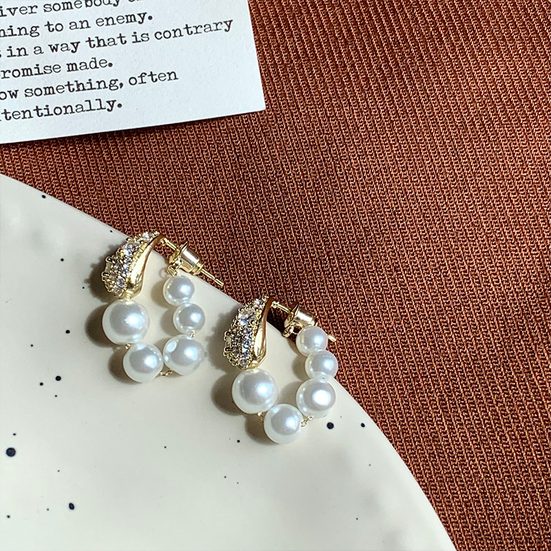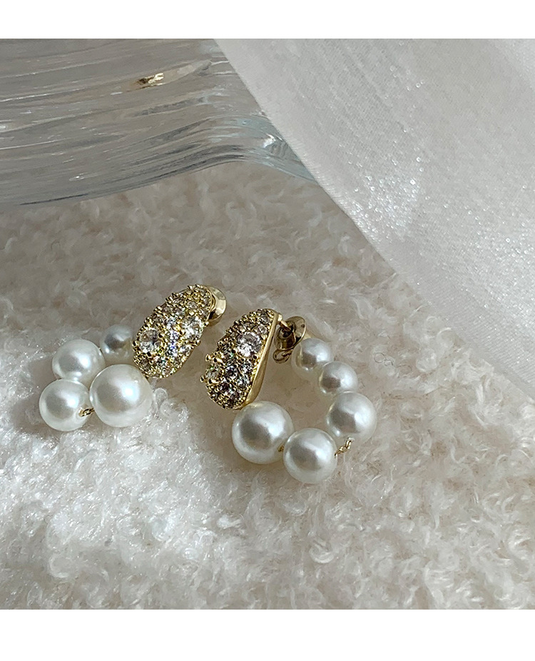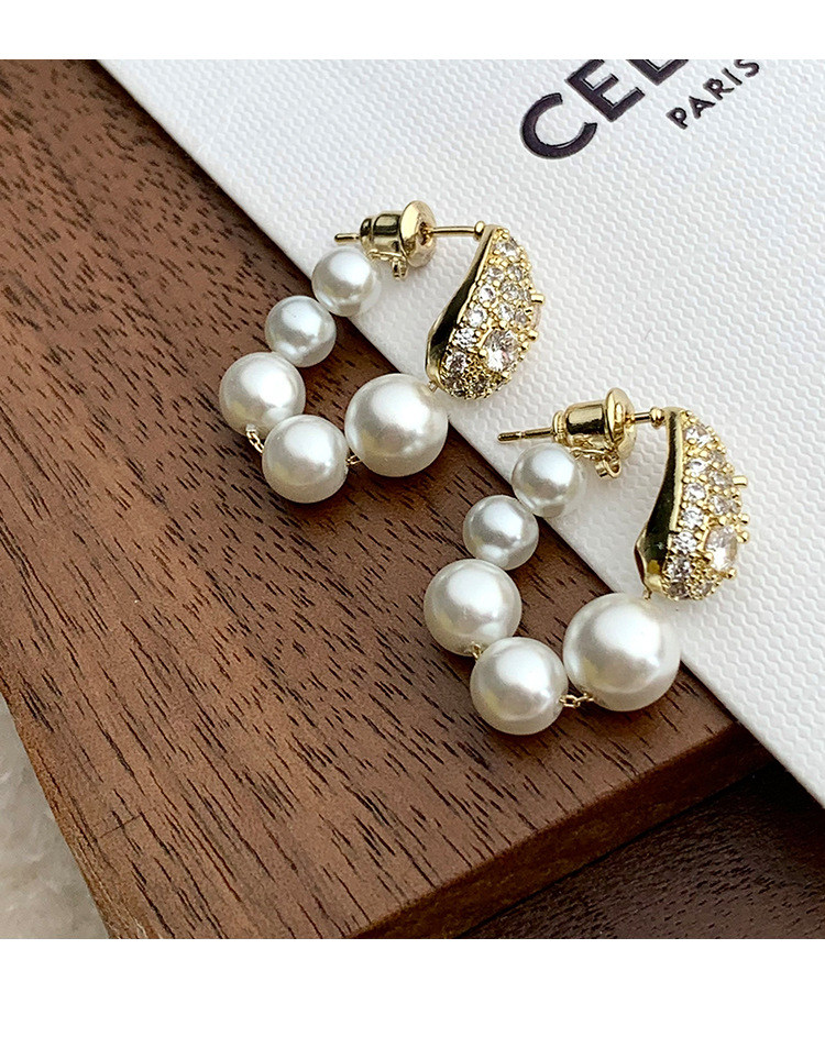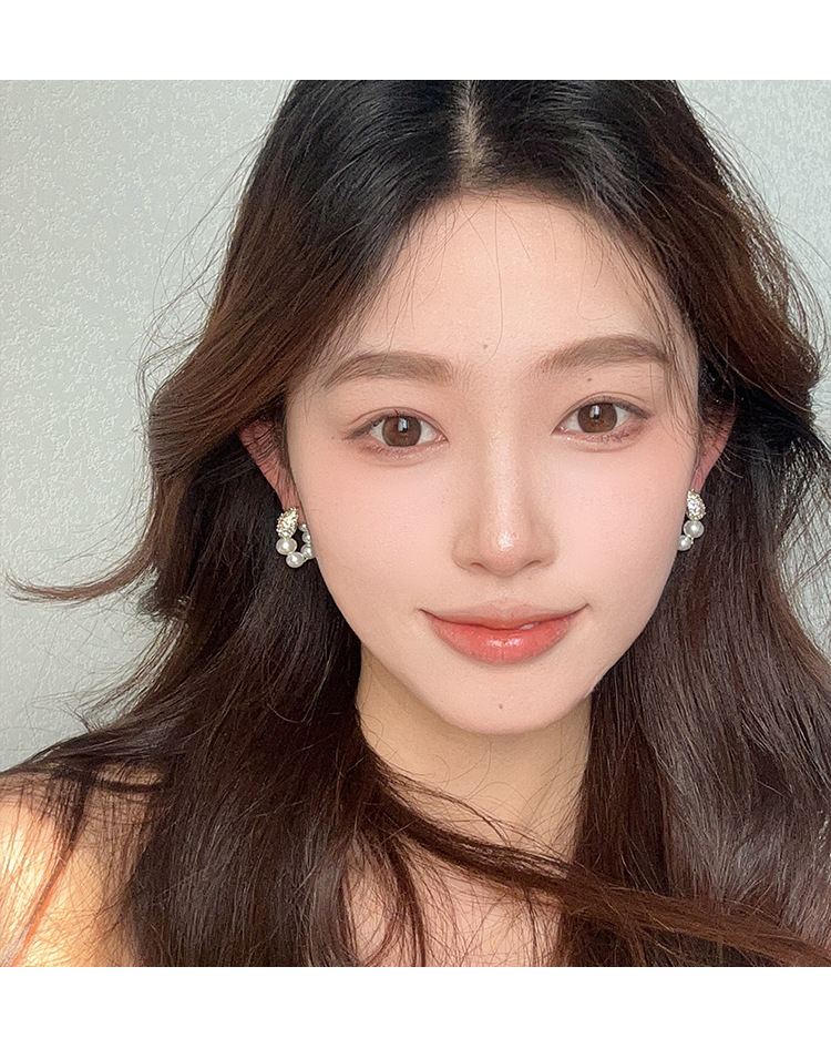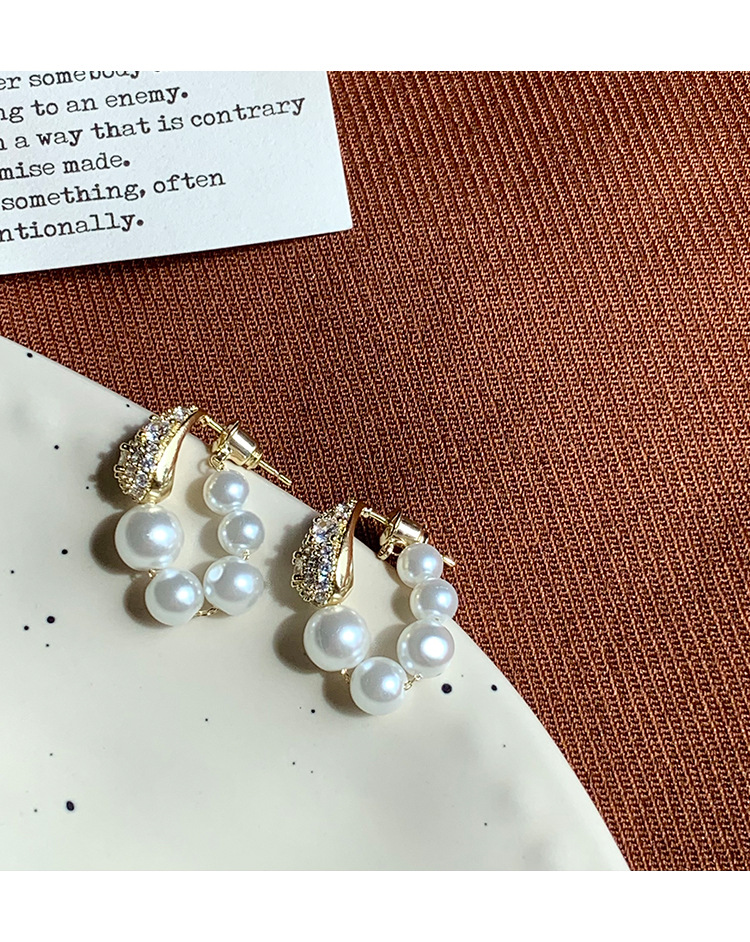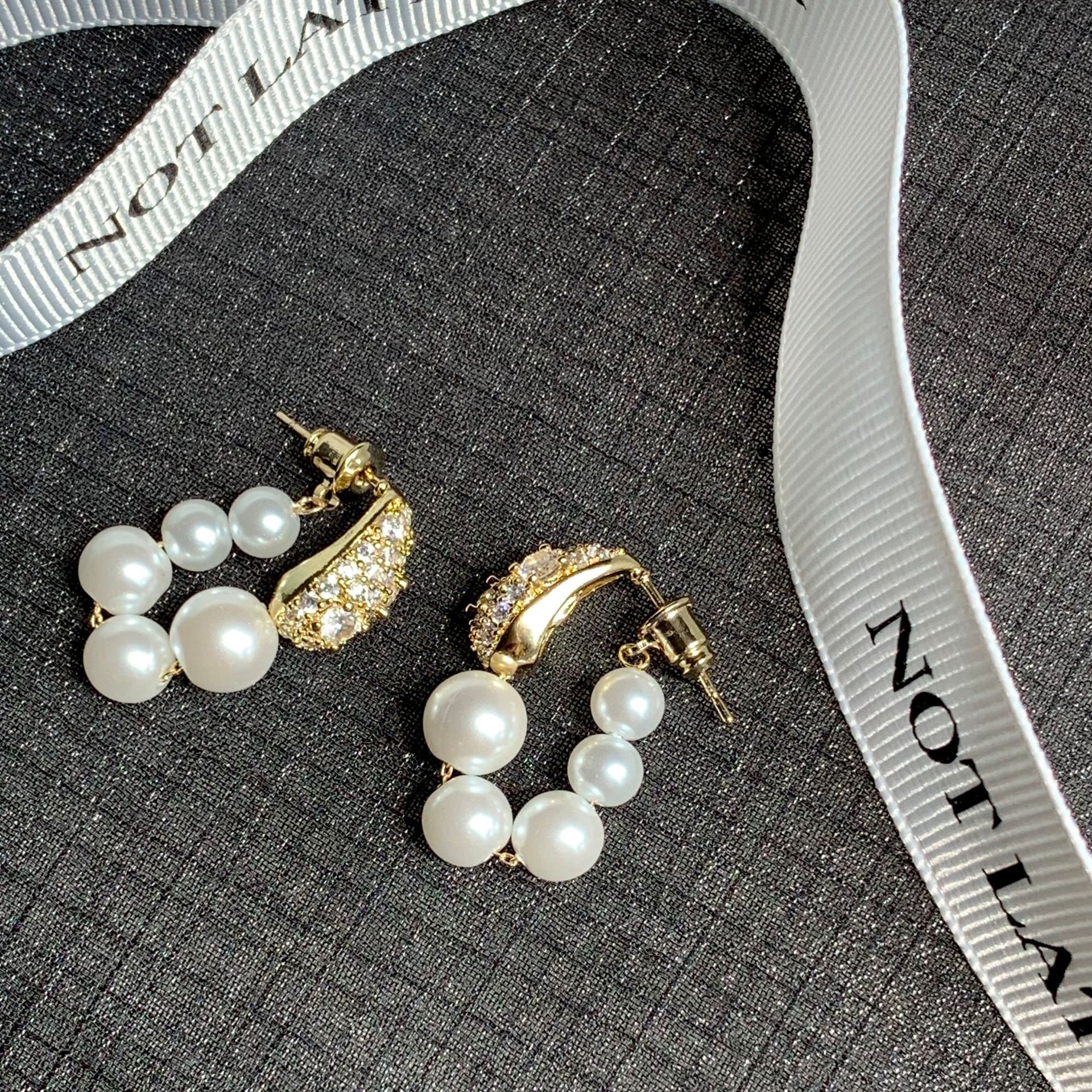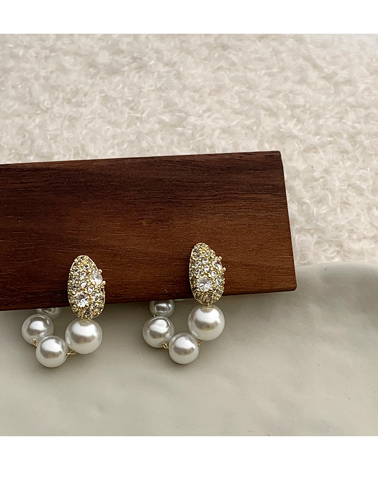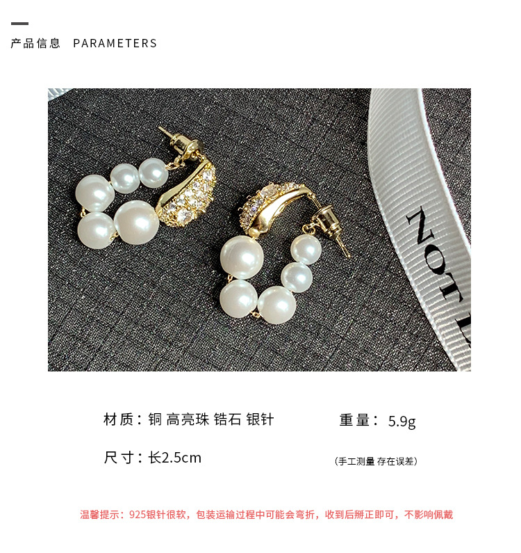 锆石珍珠耳环女小众轻奢高级感耳扣年新款气质耳钉独特耳饰潮
