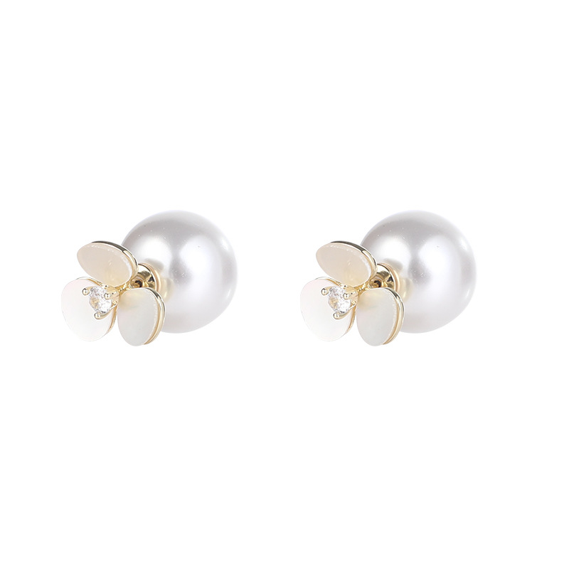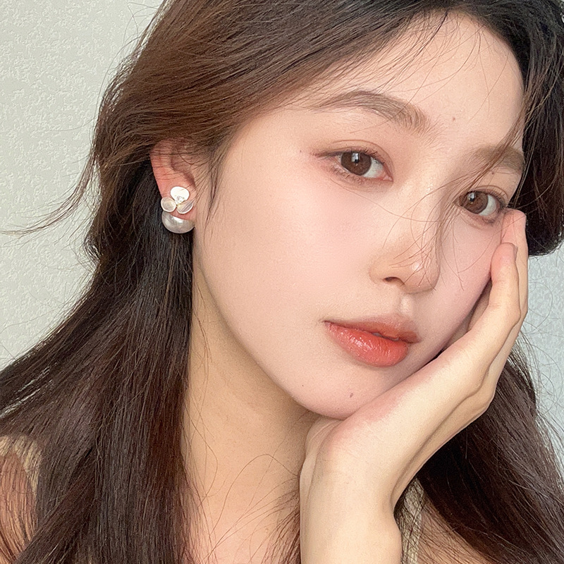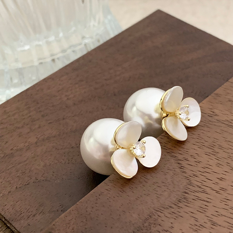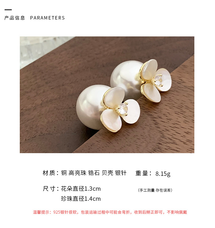 春夏甜美气质贝壳花朵珍珠耳环小众设计感一款两戴耳钉女简约耳饰