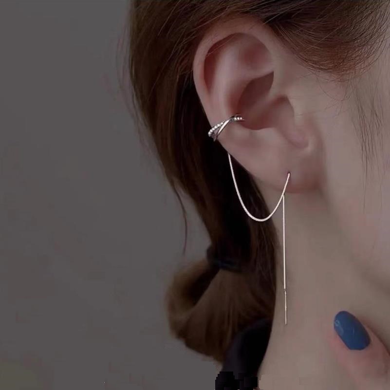 S925纯银耳线气质耳骨夹耳环女韩版INS小众设计轻奢耳饰