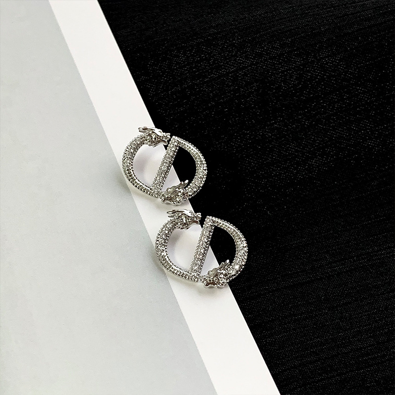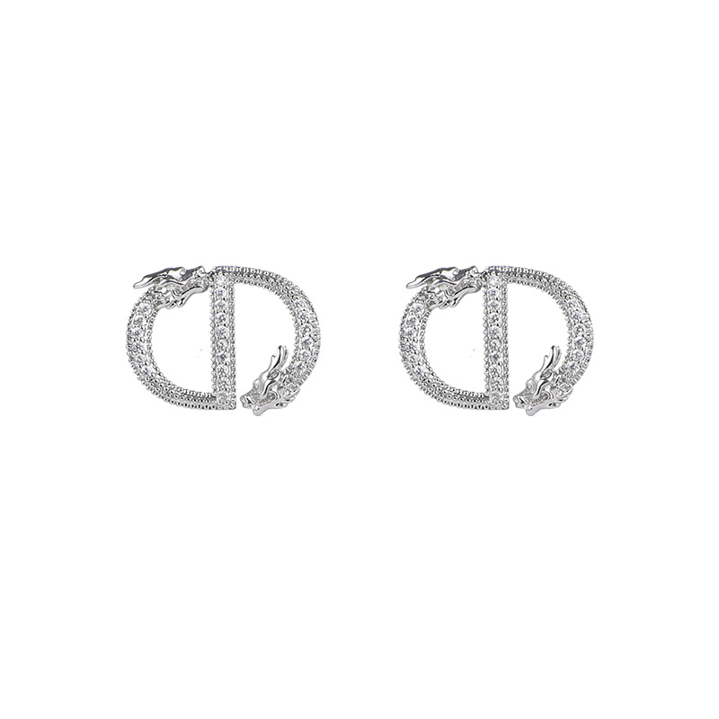微镶锆石龙形字母CD耳环女轻奢精致独特耳钉年新款高级感耳饰