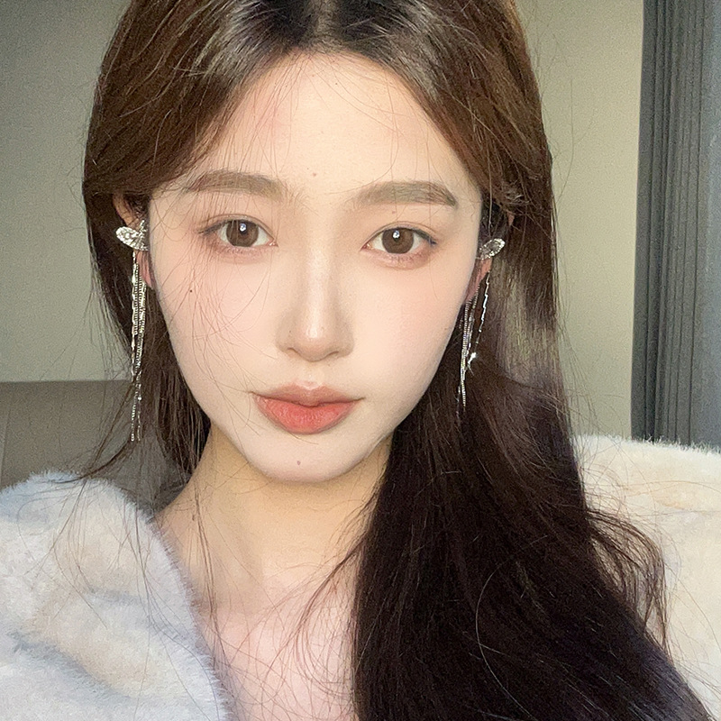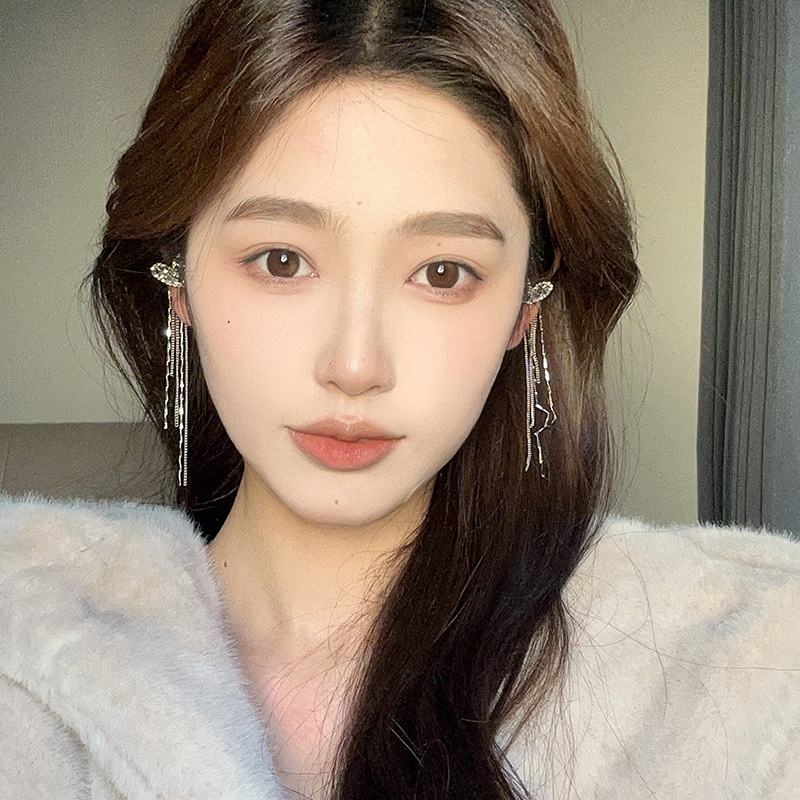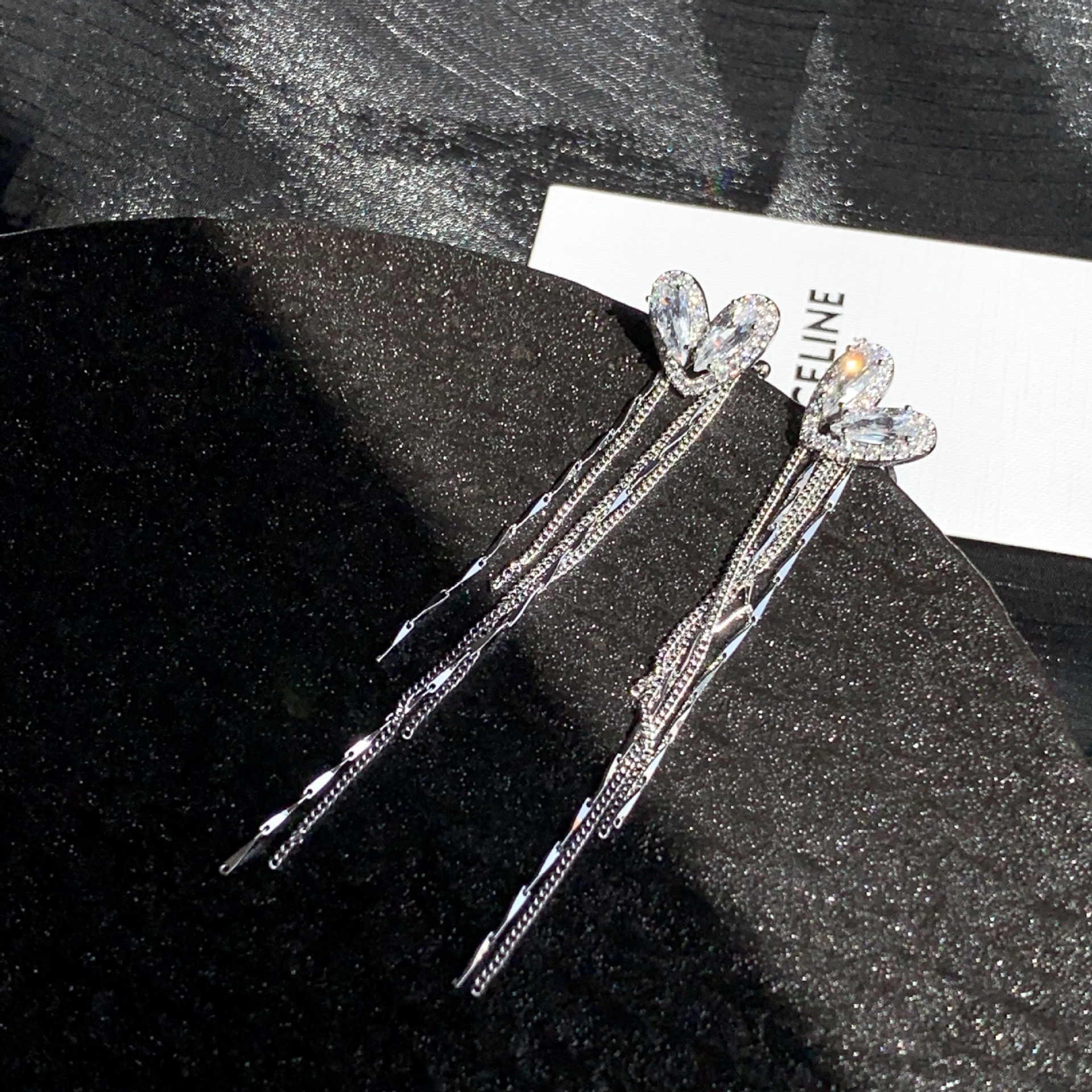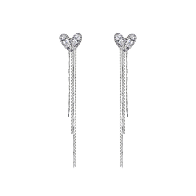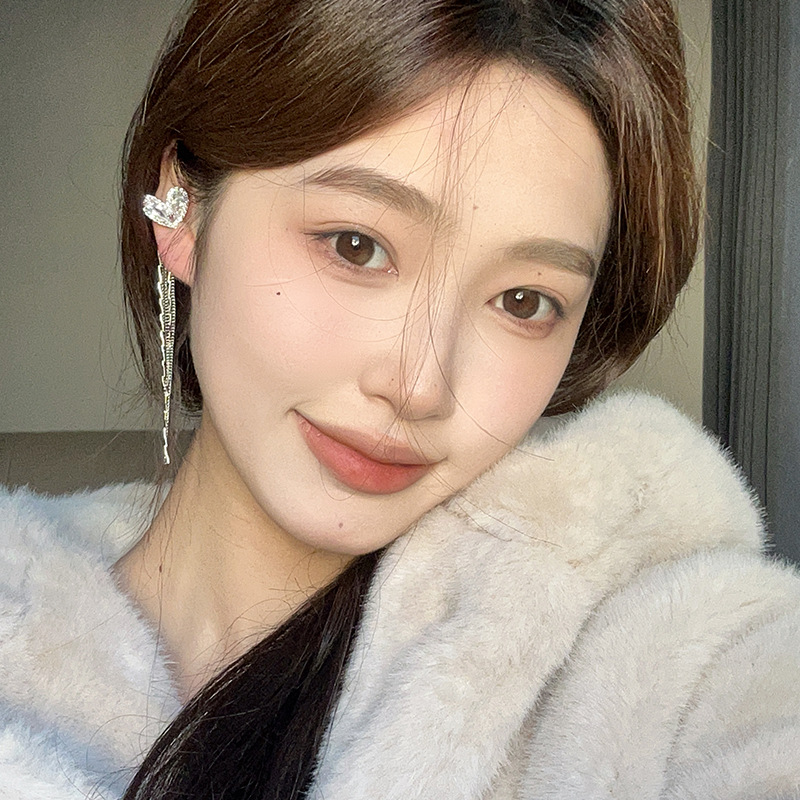 气质锆石爱心流苏耳夹年新款爆闪独特耳环轻奢小众高级感耳饰