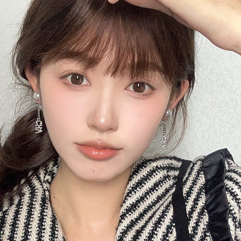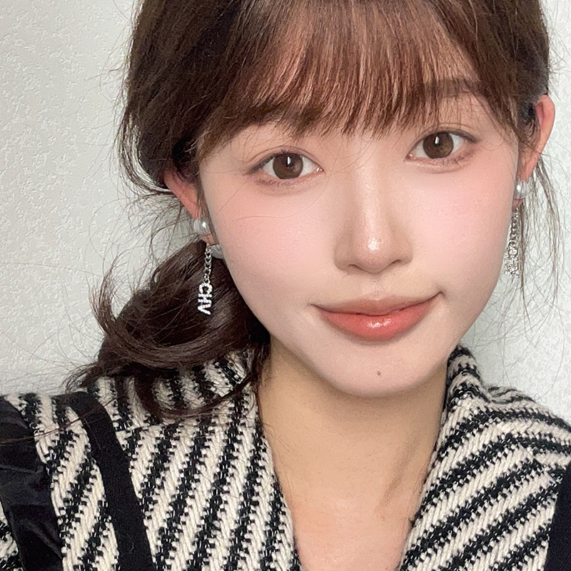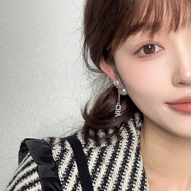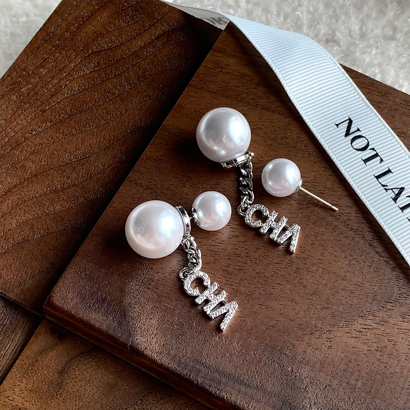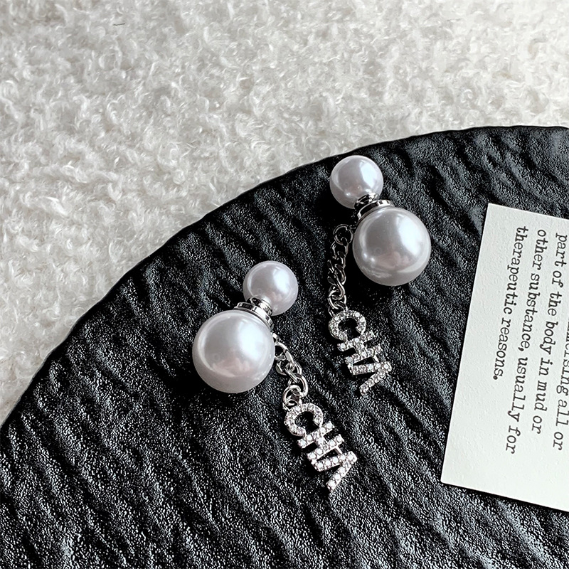 小香风字母珍珠耳环气质优雅高级感耳钉年新款前后戴法式耳饰