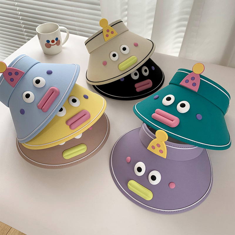 搞怪防晒帽可爱大帽檐女潮显脸小空顶帽户外防紫外线防晒遮阳帽子