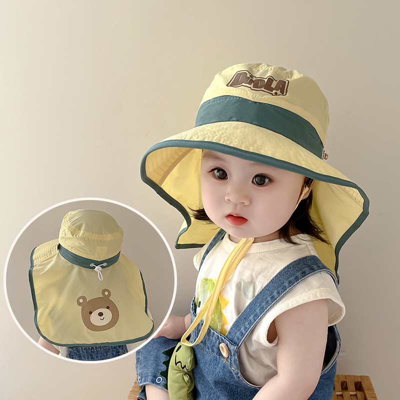 韩版宝宝防晒帽子夏季薄款速干披肩防紫外线遮脸儿童太阳帽大帽檐