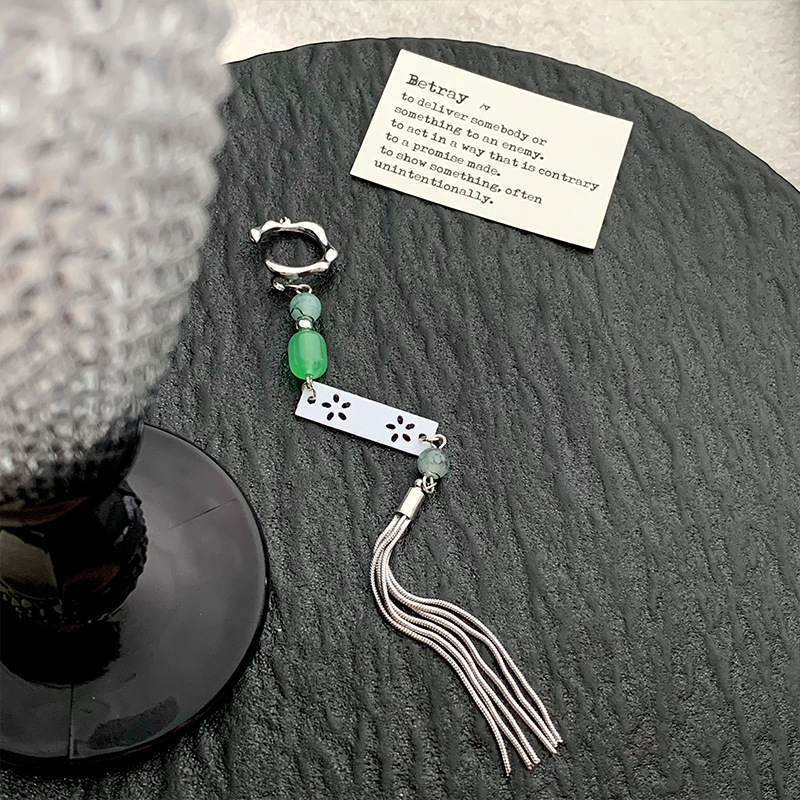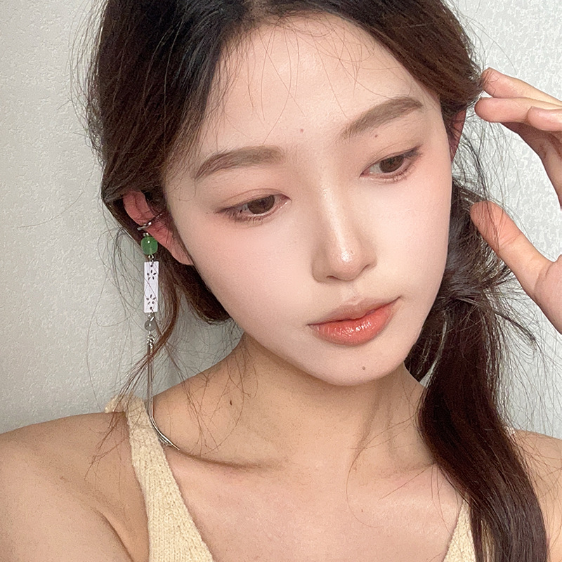 新中式冷淡风玉石流苏耳骨夹独特国风无耳洞耳夹古风气质长款耳饰