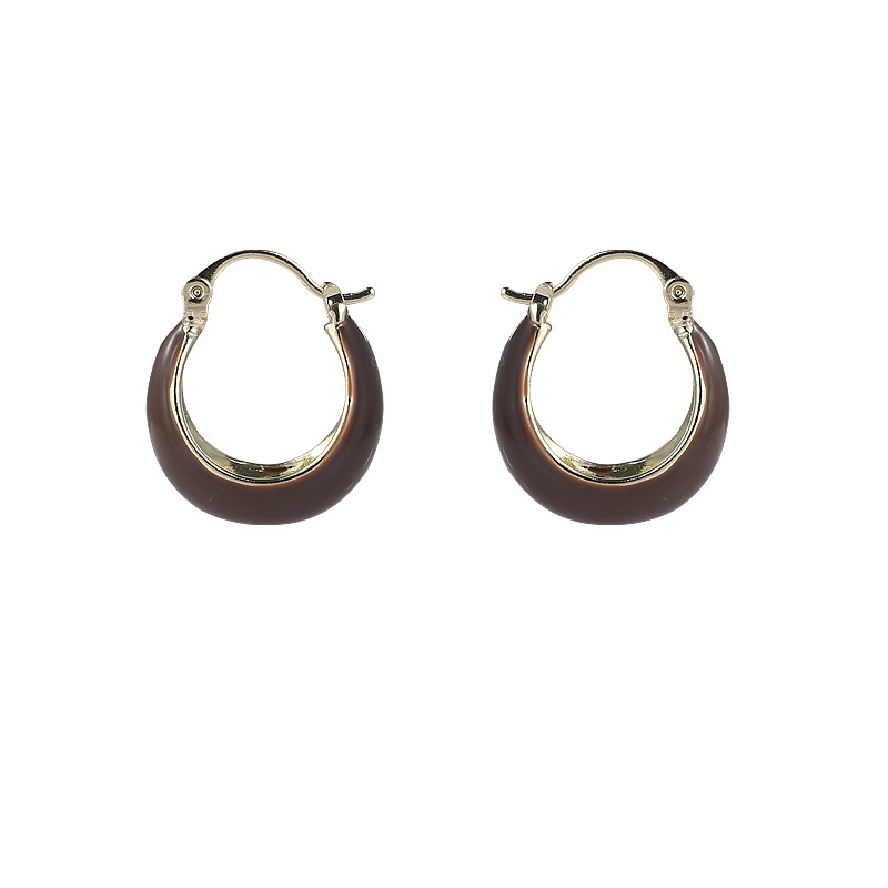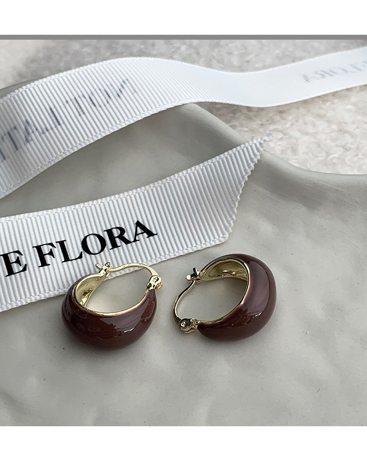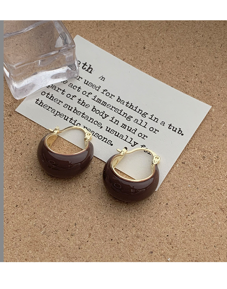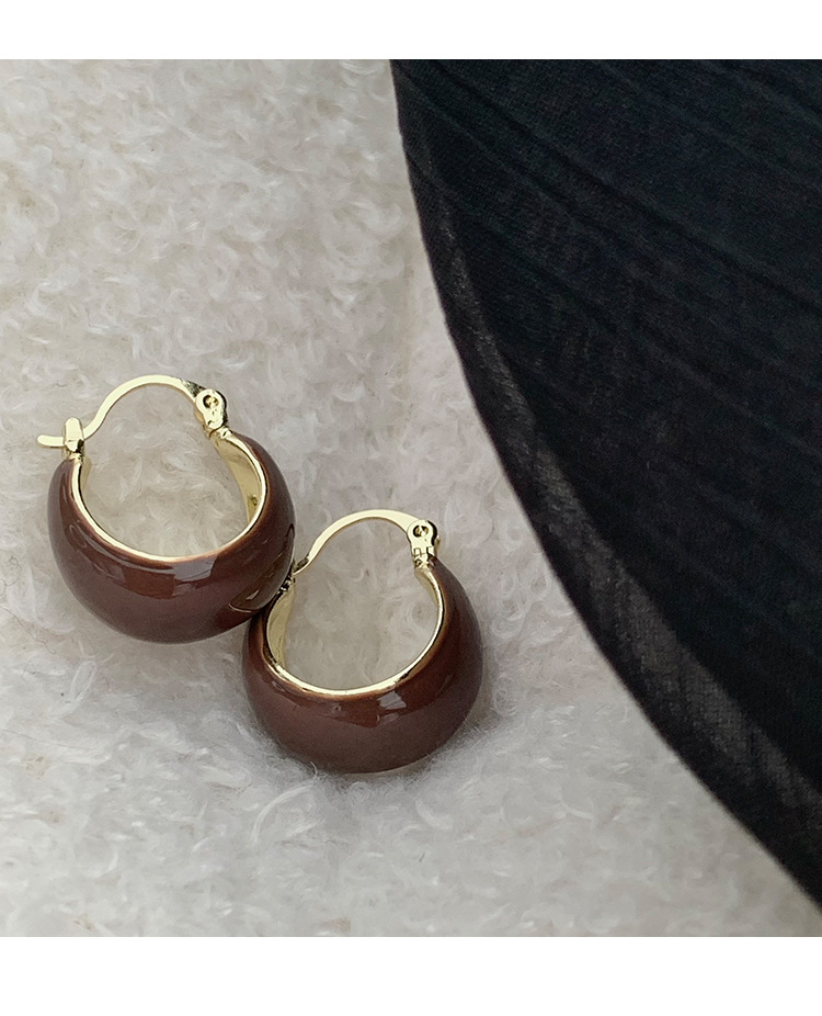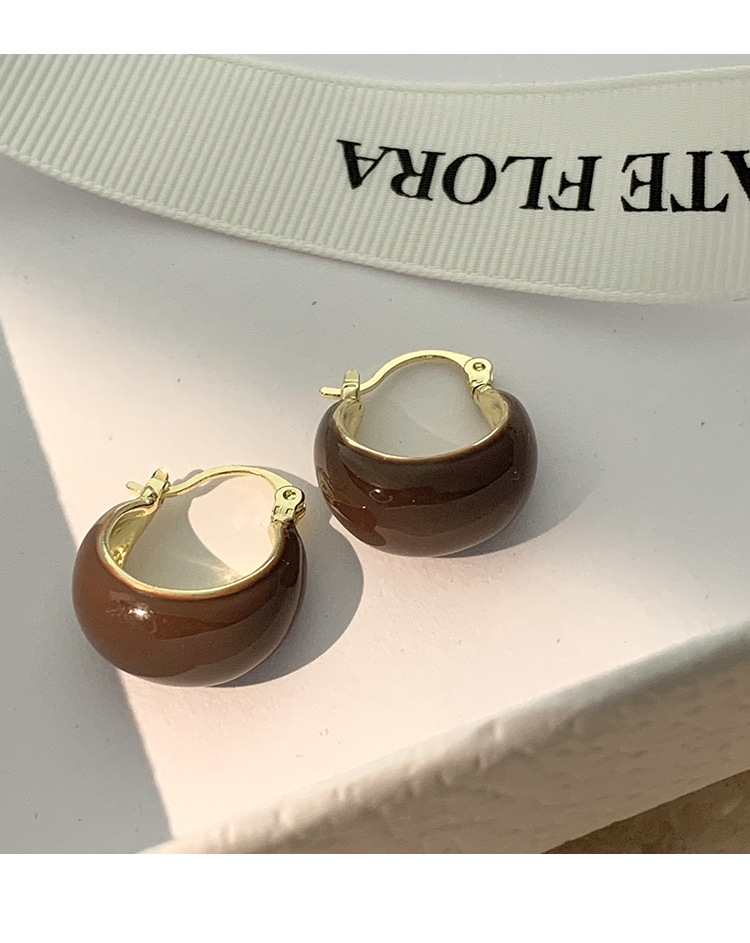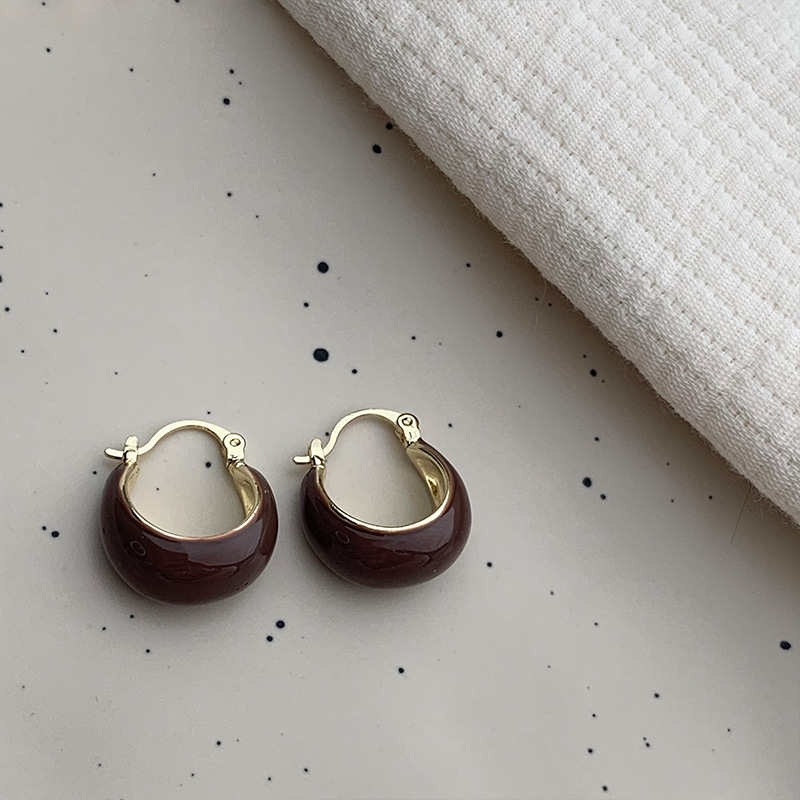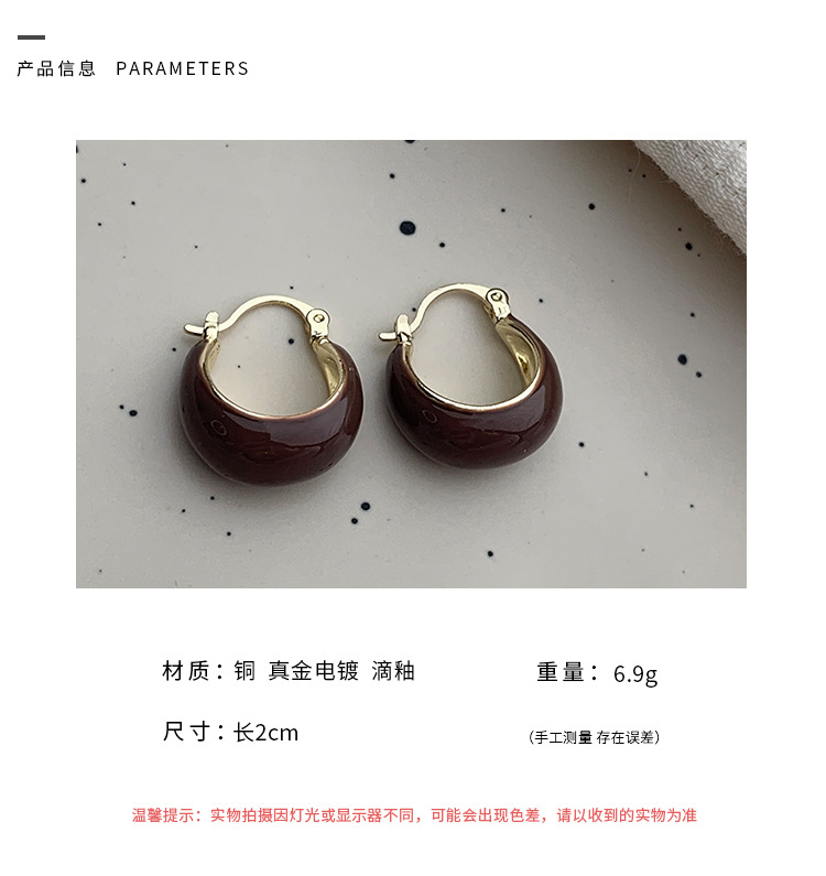 气质复古美拉德风滴釉素圈耳扣气质小众高级感耳环简约百搭耳饰女