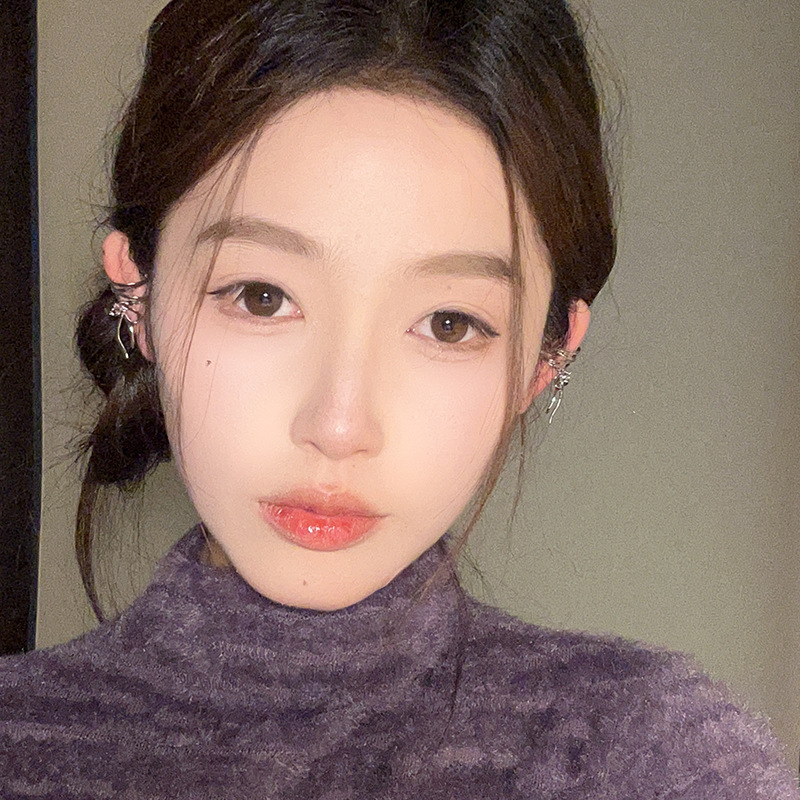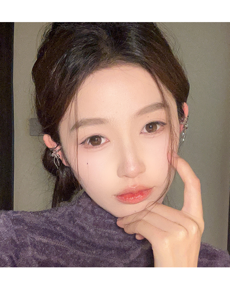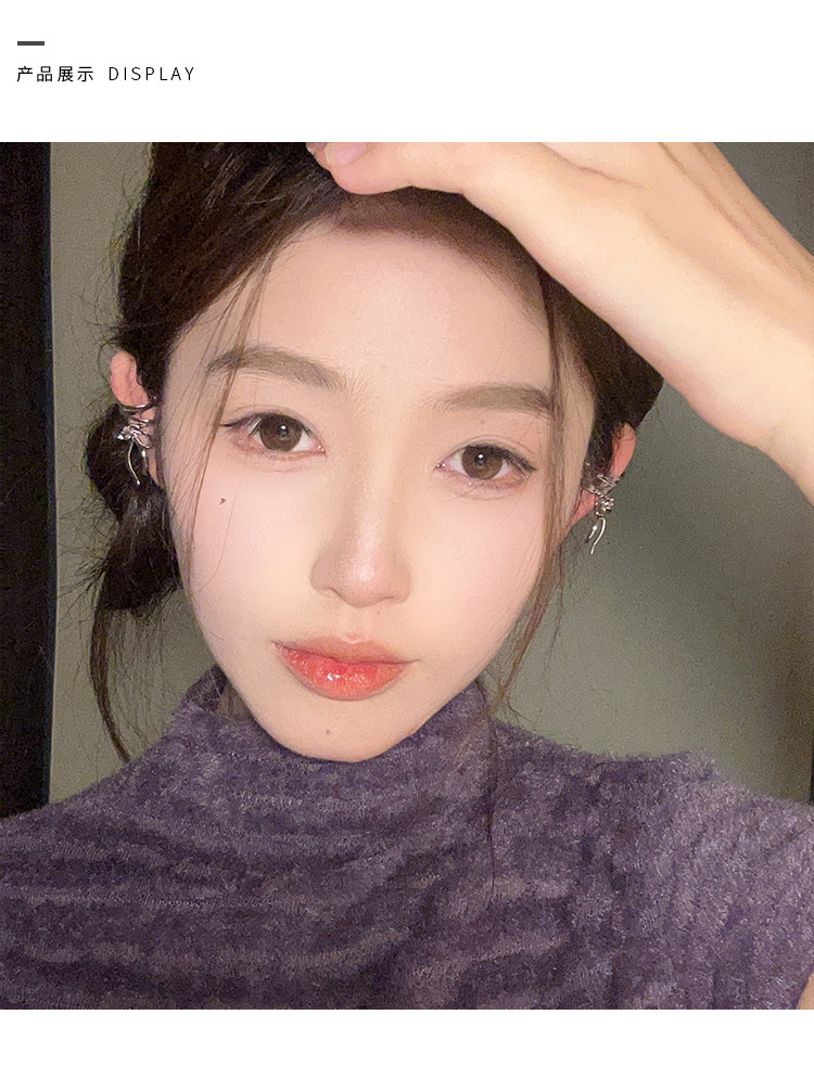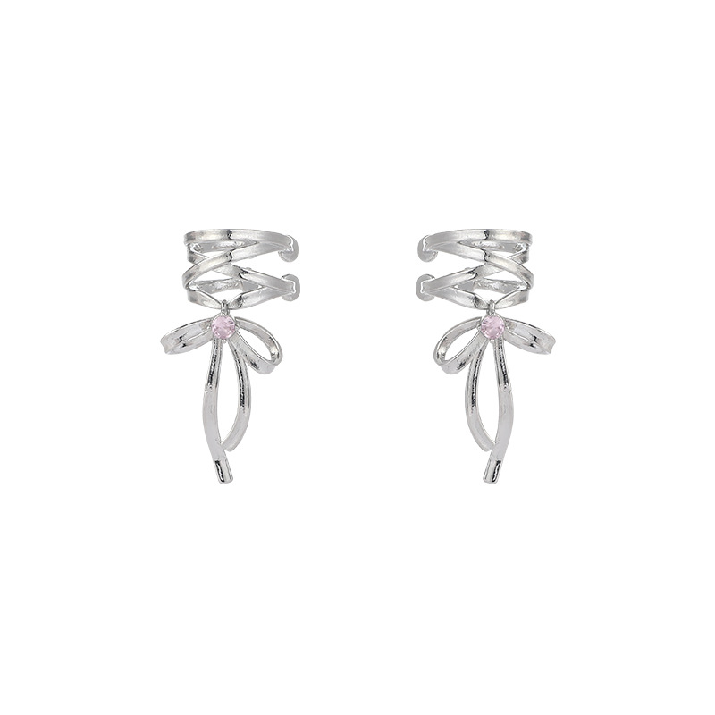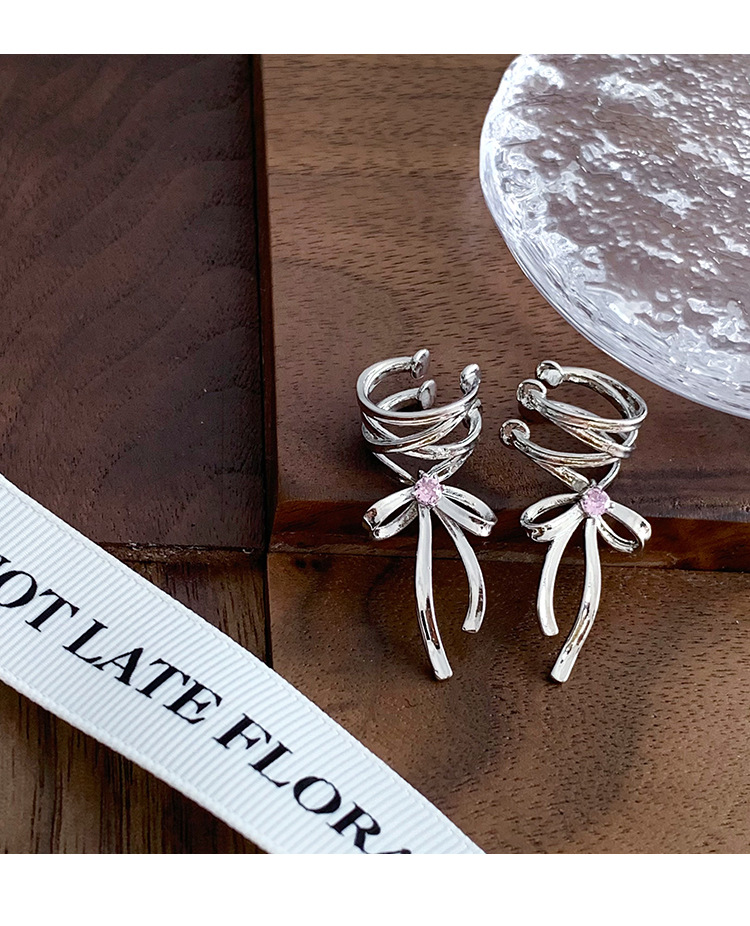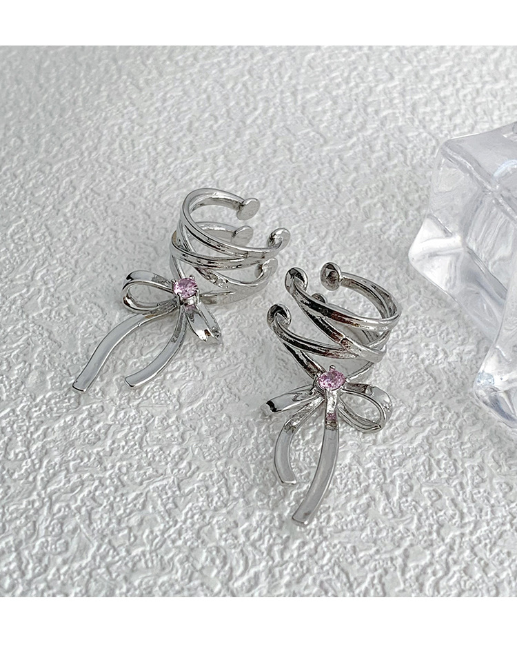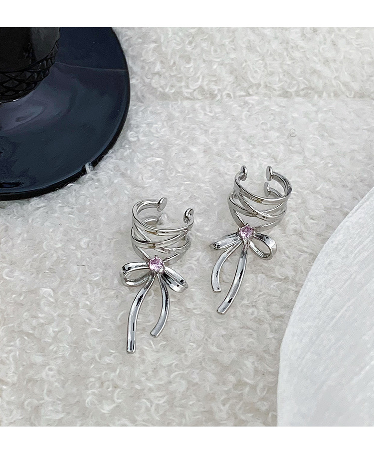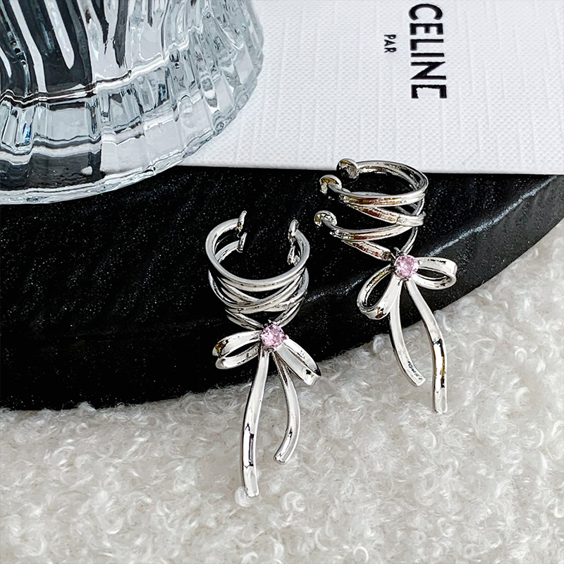 甜酷风粉钻金属蝴蝶结丝带耳夹小众设计百搭无耳洞耳骨夹百搭耳饰