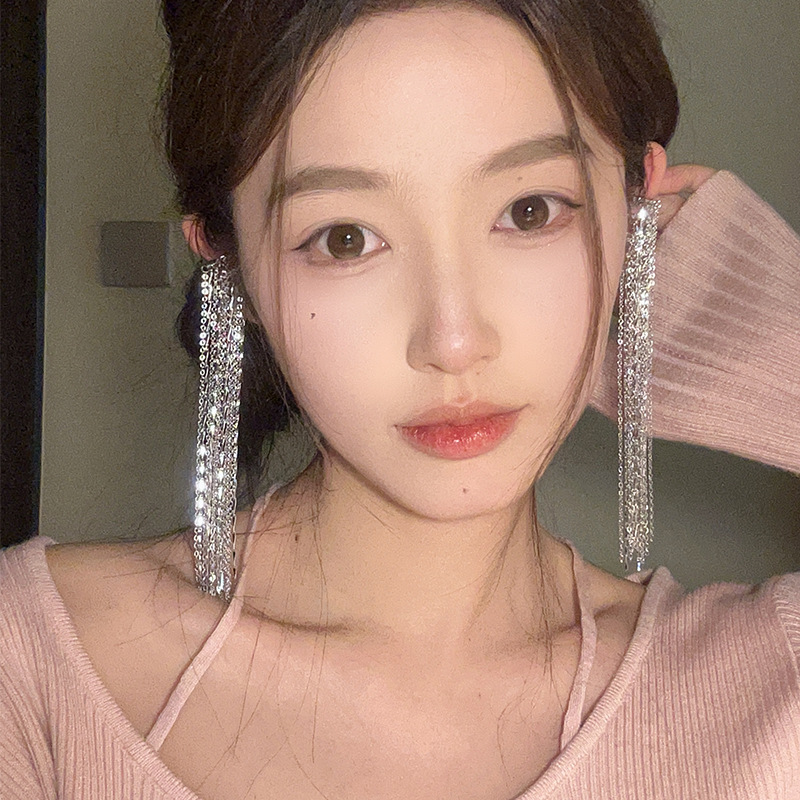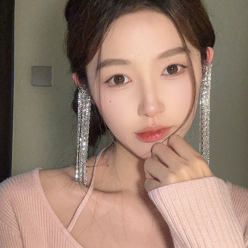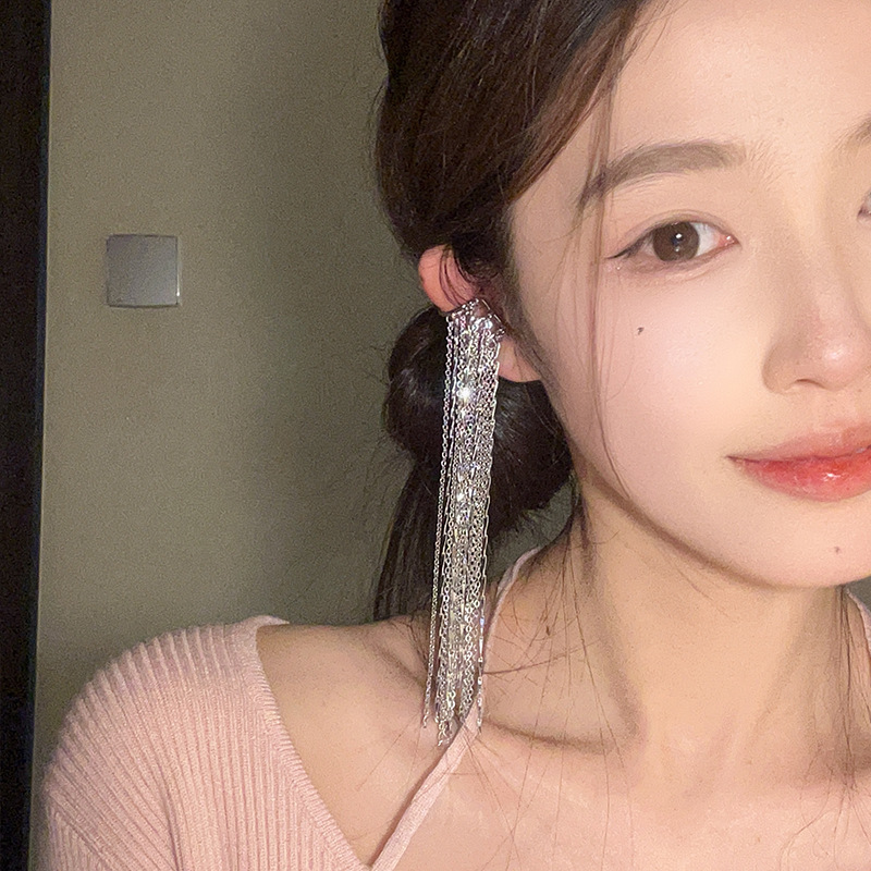 个性夸张超闪长款流苏耳夹年新款小众设计感无耳洞耳骨夹耳饰