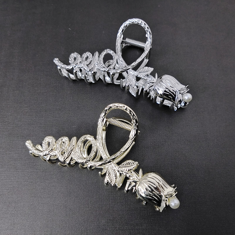 新款高级感金属玫瑰花抓夹大号鲨鱼夹气质小众设计款女优雅发夹