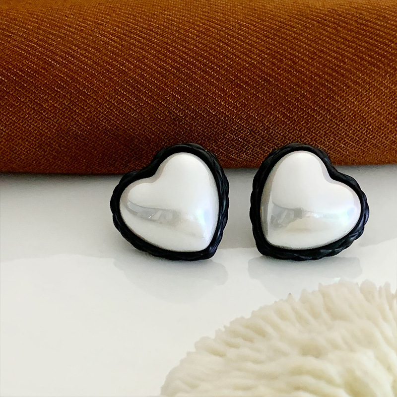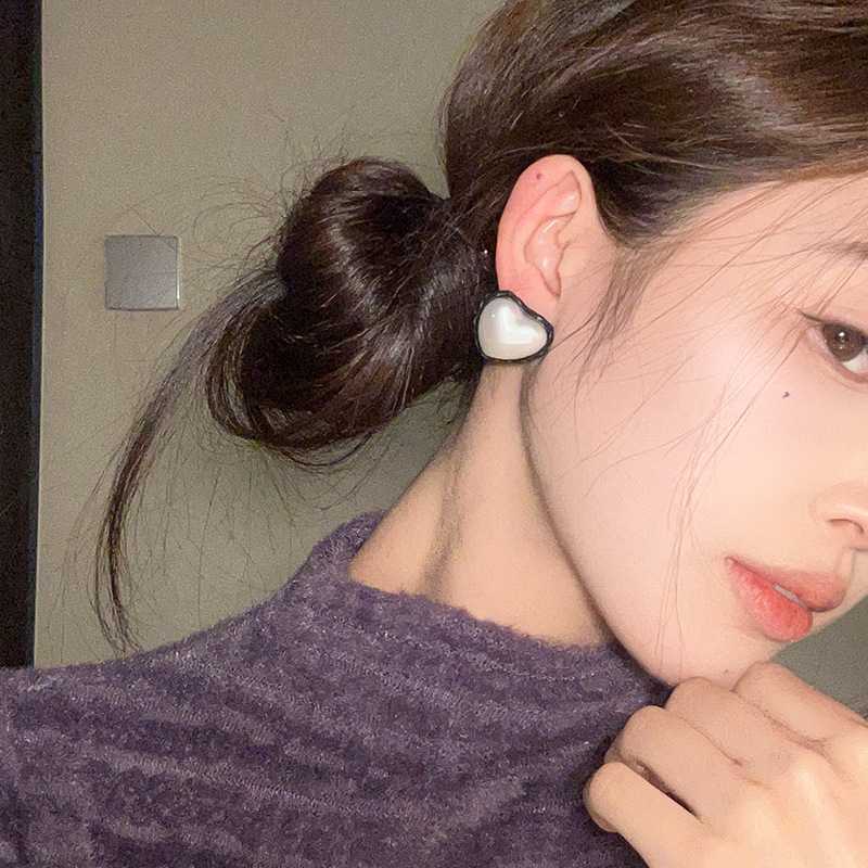 复古简约气质珍珠爱心耳钉小众高级感百搭耳环年新款个性耳饰