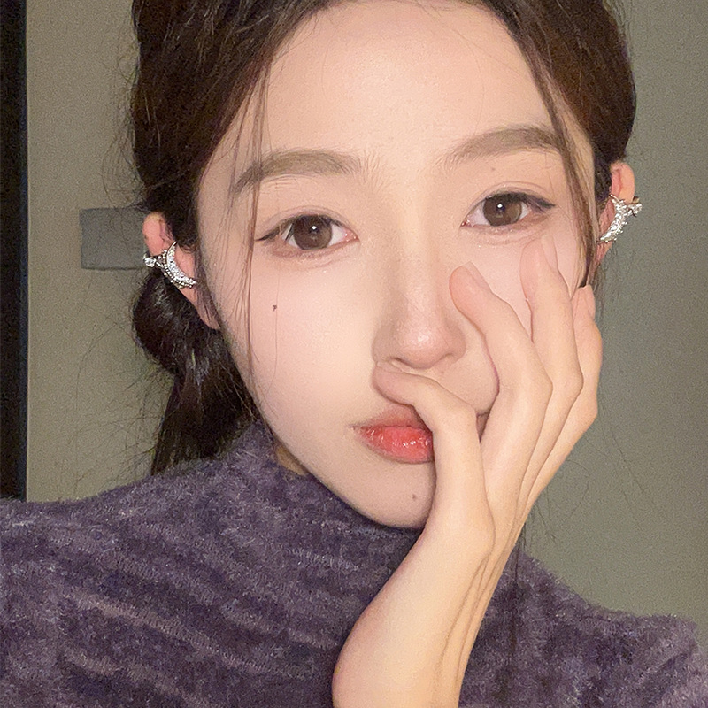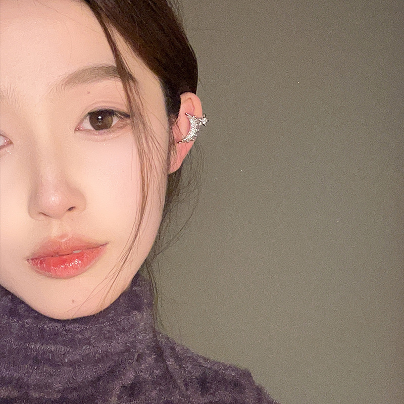 轻奢高级感锆石星星月亮耳骨夹女气质小众星月耳夹耳环无耳洞耳饰