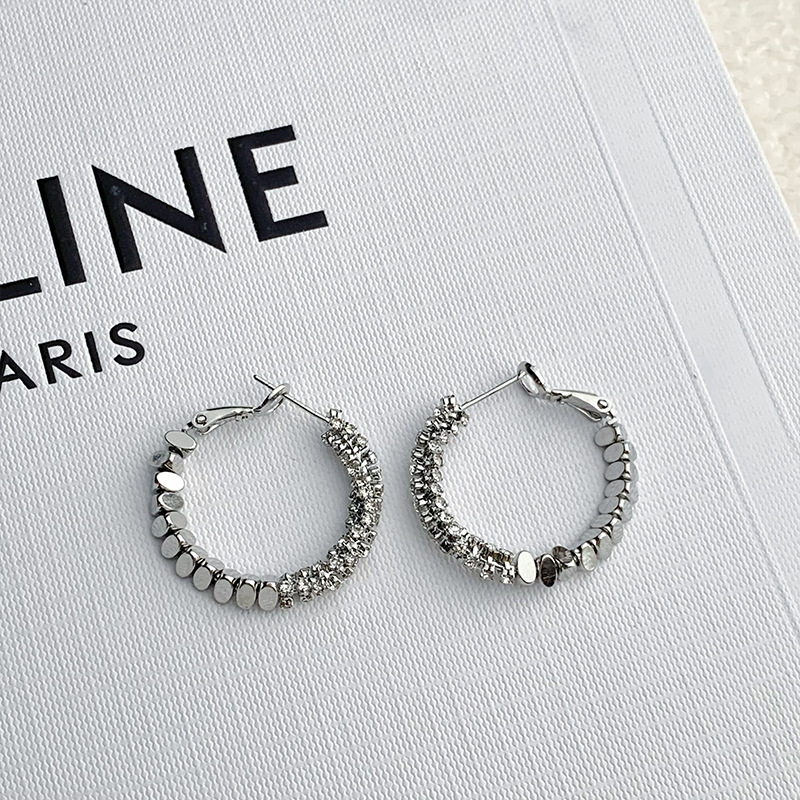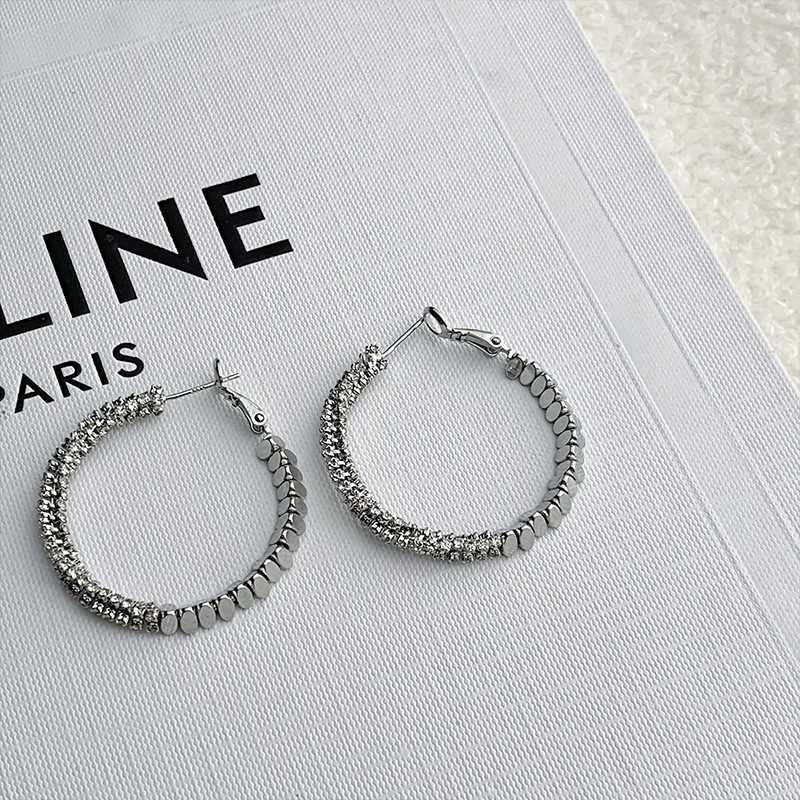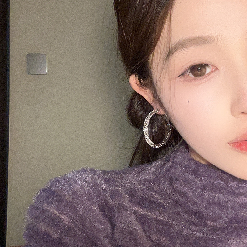 冷淡风银色闪钻碎银耳圈女轻奢高级感圆圈耳环气质小众设计感耳饰