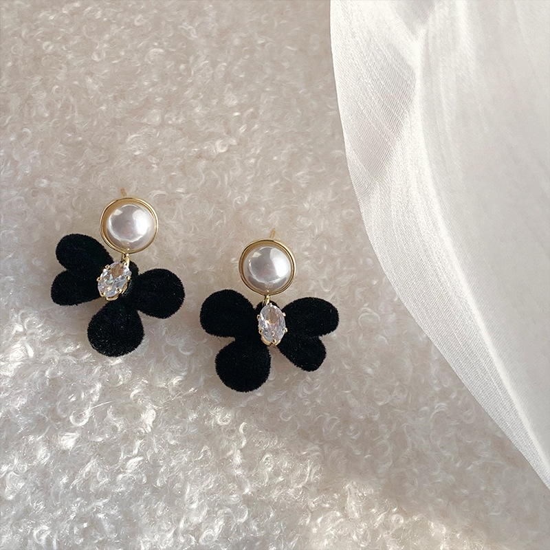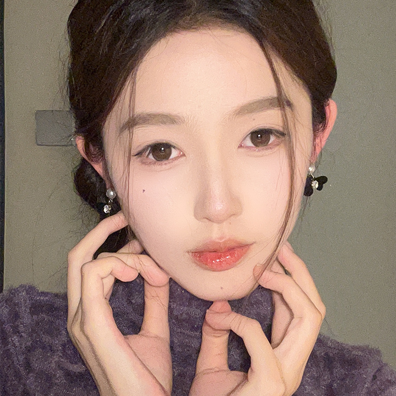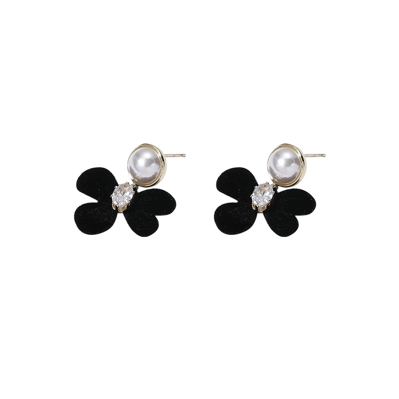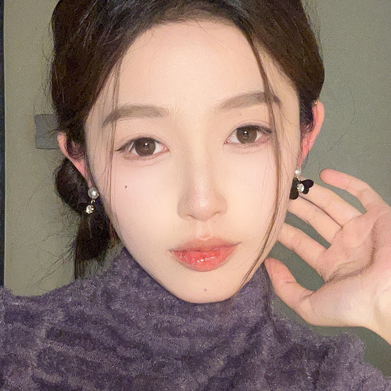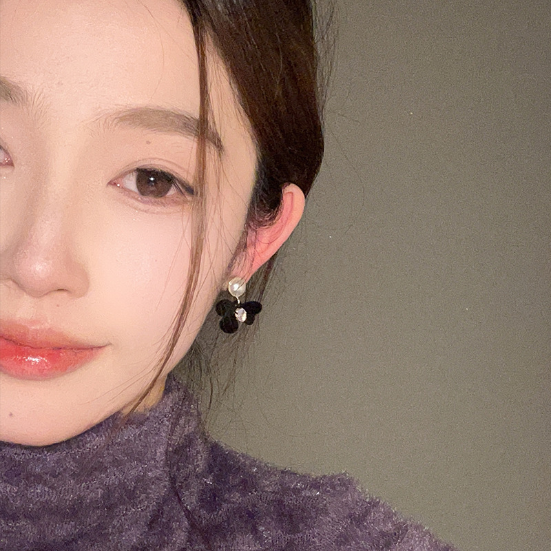 小众设计黑色植绒蝴蝶结珍珠耳环女年新款气质高级感耳钉耳饰