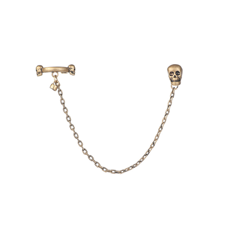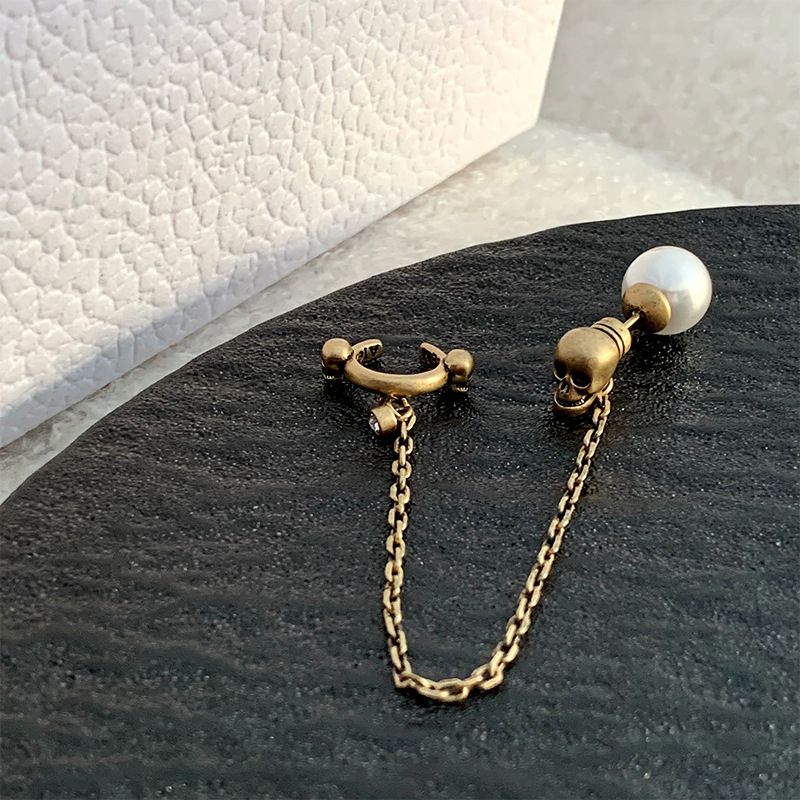复古小众高级感金属骷髅耳钉耳夹一体式一款两戴珍珠耳饰独特配饰