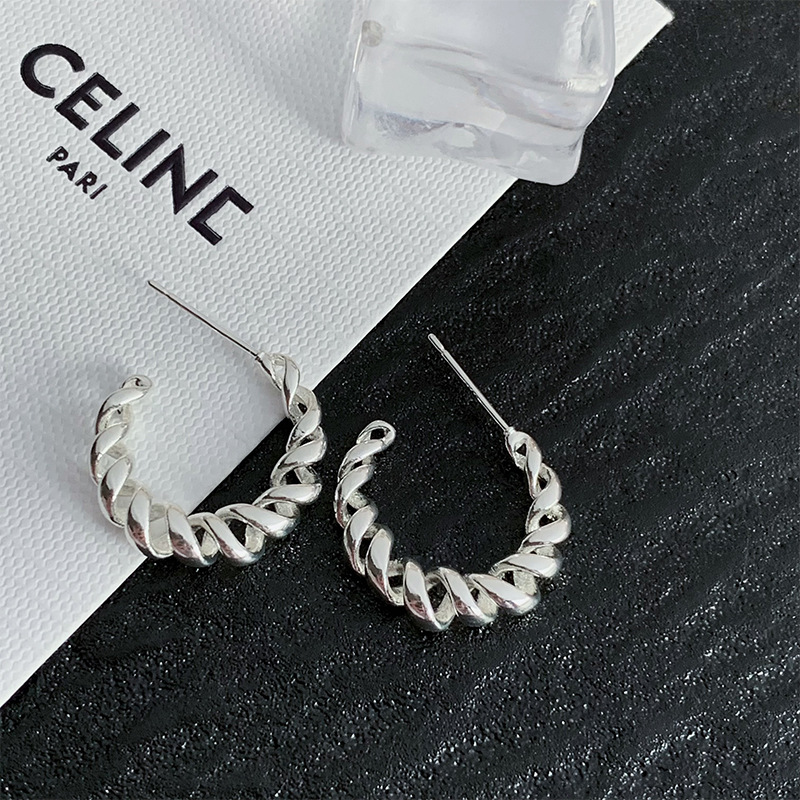 ins小众设计感金属麻花耳环女 气质轻奢高级感耳圈冷淡风独特耳饰