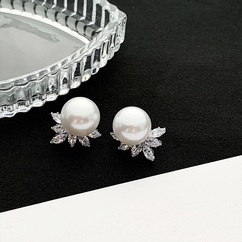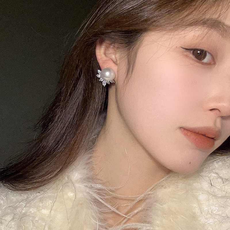 法式气质轻奢高级感珍珠锆石耳环温柔小众设计耳钉年新款耳饰