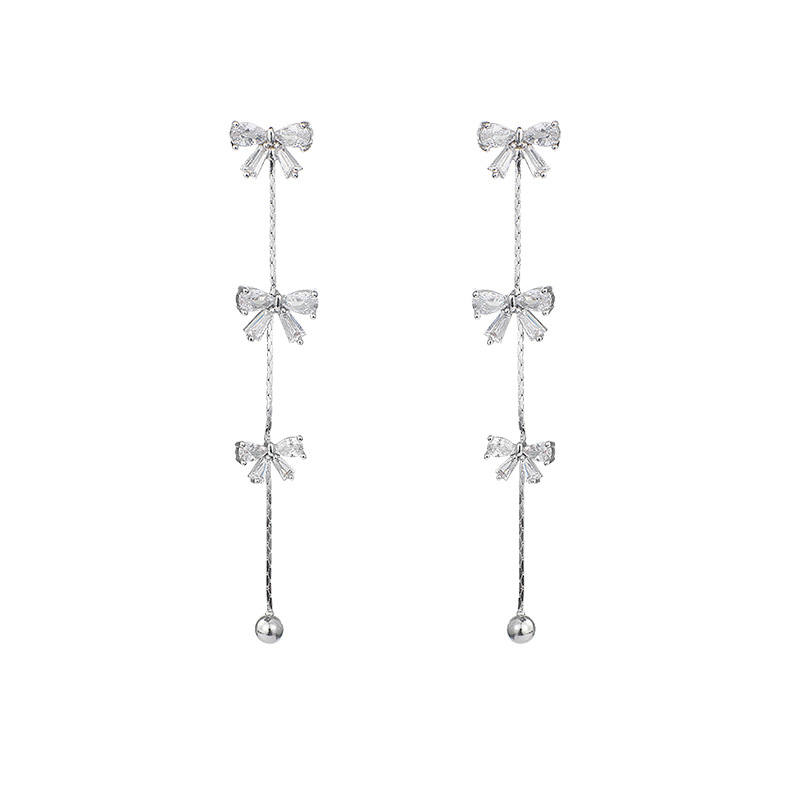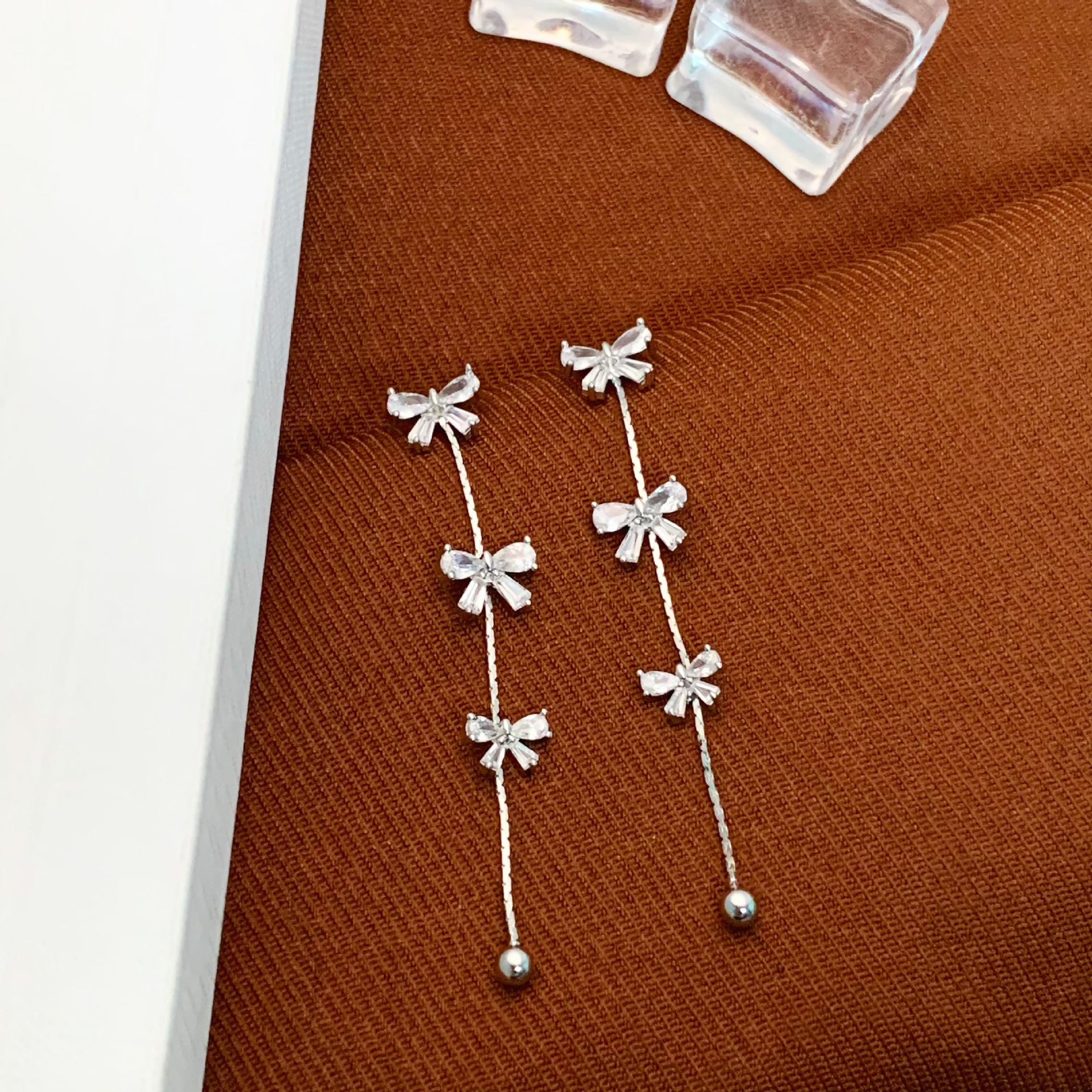 甜美长款锆石蝴蝶结流苏耳环女气质轻奢高级感耳坠小众设计感耳饰