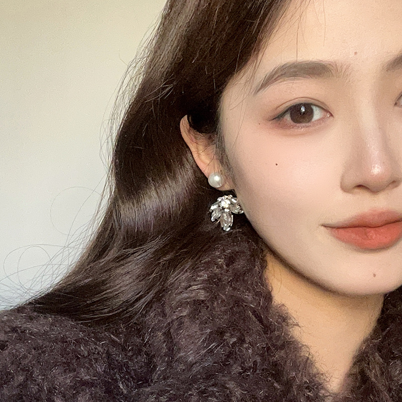 气质高级感水钻珍珠耳环女小众设计前后挂式耳钉年新款耳饰潮