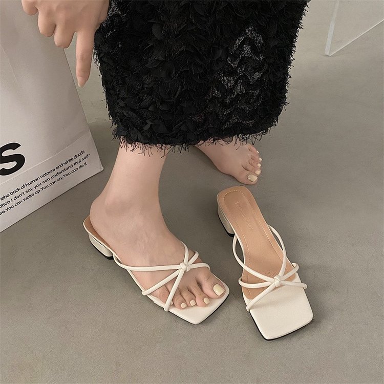 夏季新款粗跟凉拖鞋女外穿方头露趾交叉一字带低跟女鞋