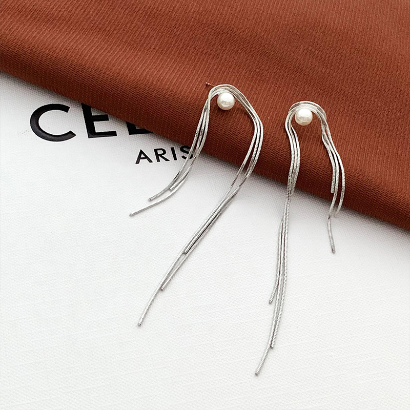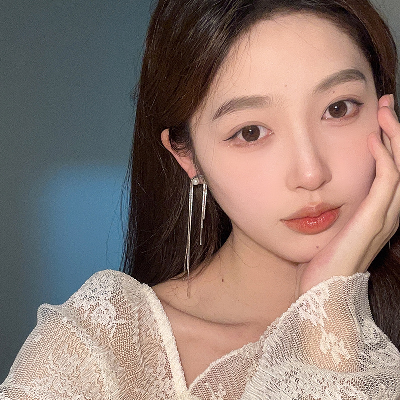 气质轻奢简约珍珠流苏耳环女小众设计感高级感长款显脸小耳钉耳饰