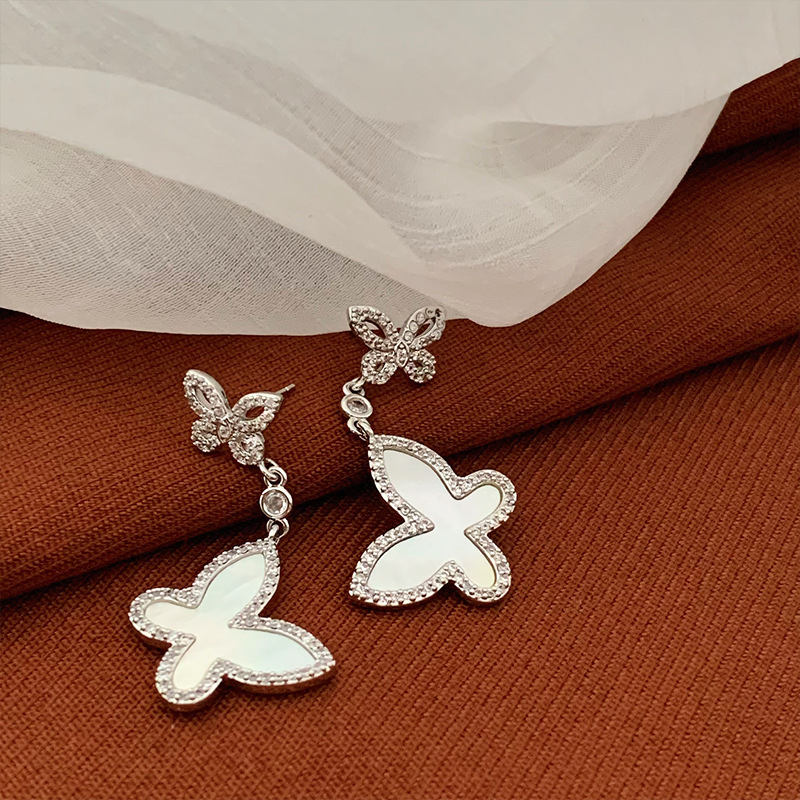 法式温柔浪漫蝴蝶贝母耳环气质轻奢高级感耳钉小众设计感早春耳饰