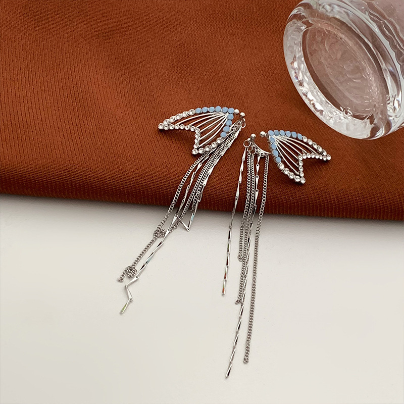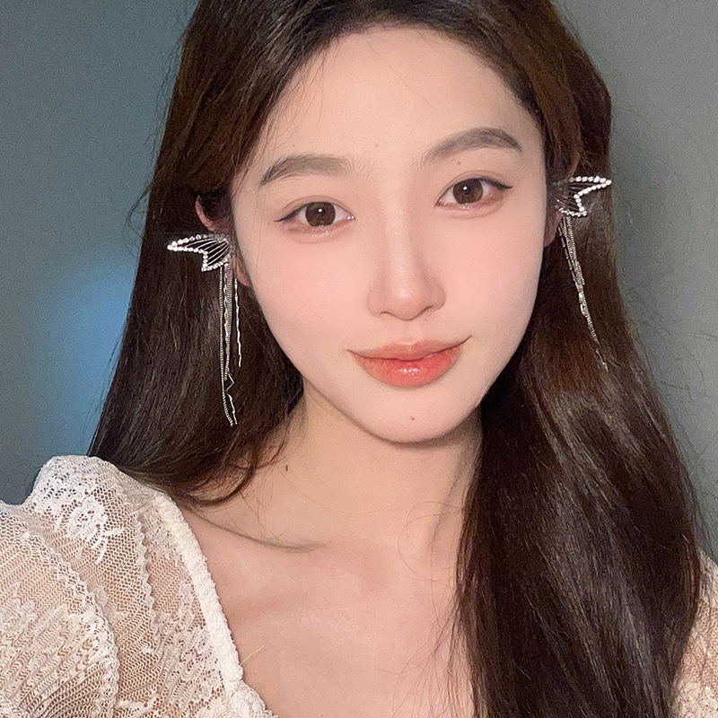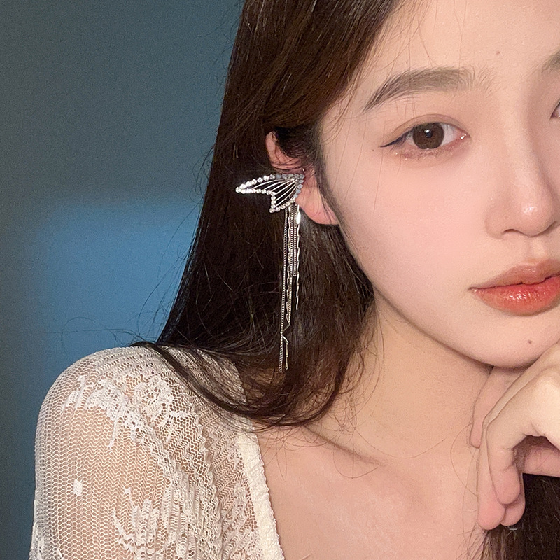 气质高级感闪钻蝴蝶翅膀流苏耳夹女轻奢仙气耳骨夹长款无耳洞耳饰