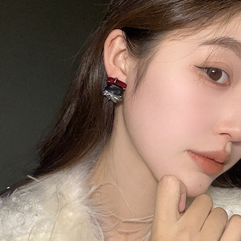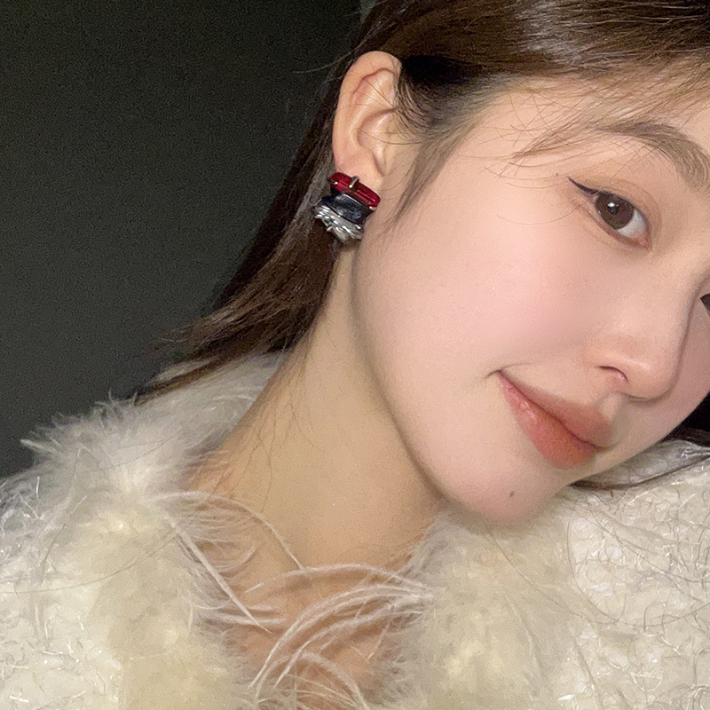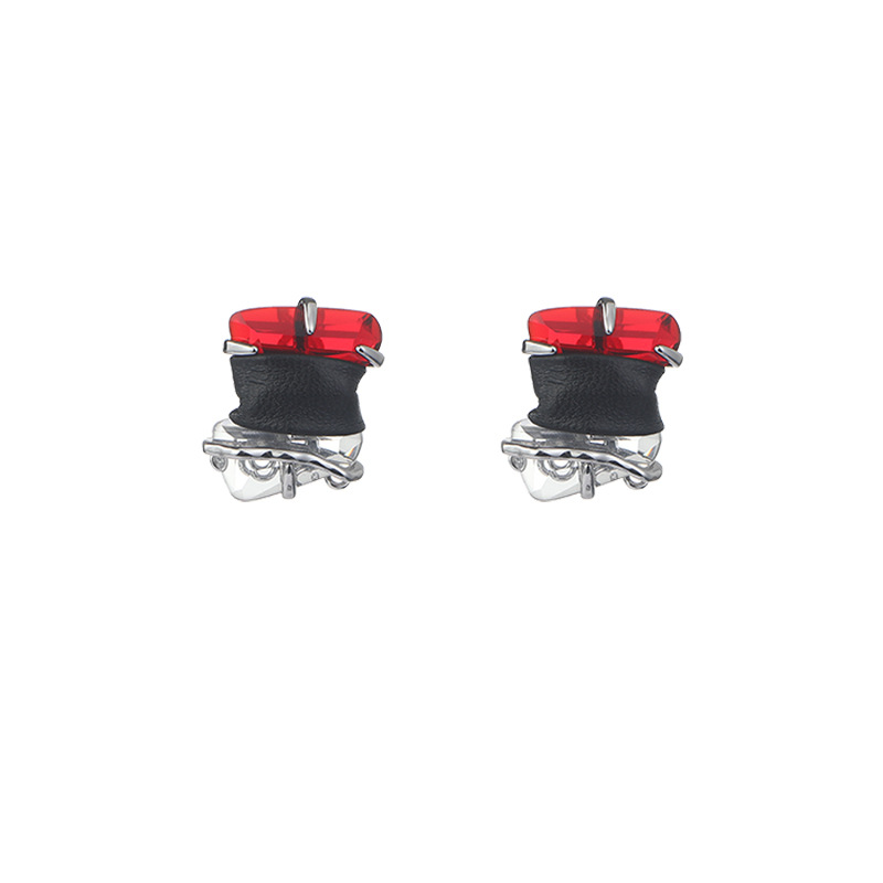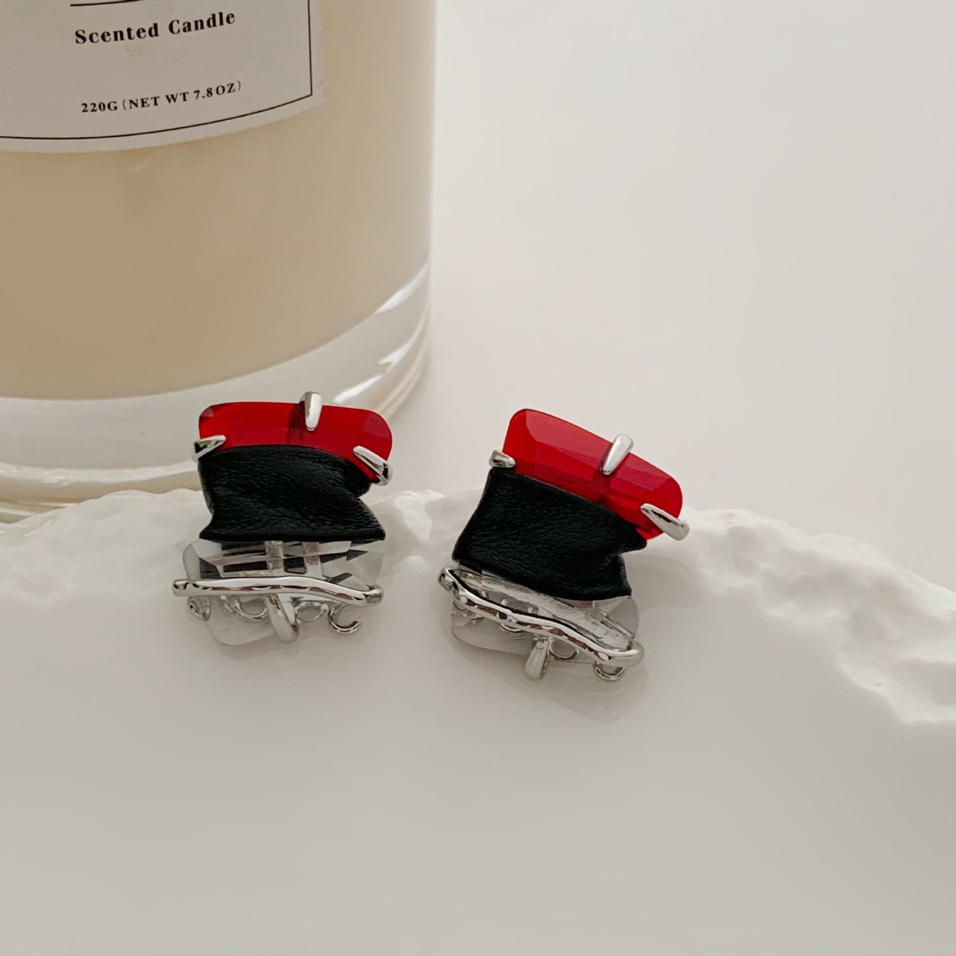 轻奢高级感甜酷双拼皮革水晶耳钉 ins小众设计感独特辣妹耳环耳饰