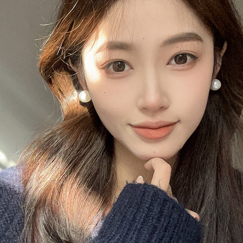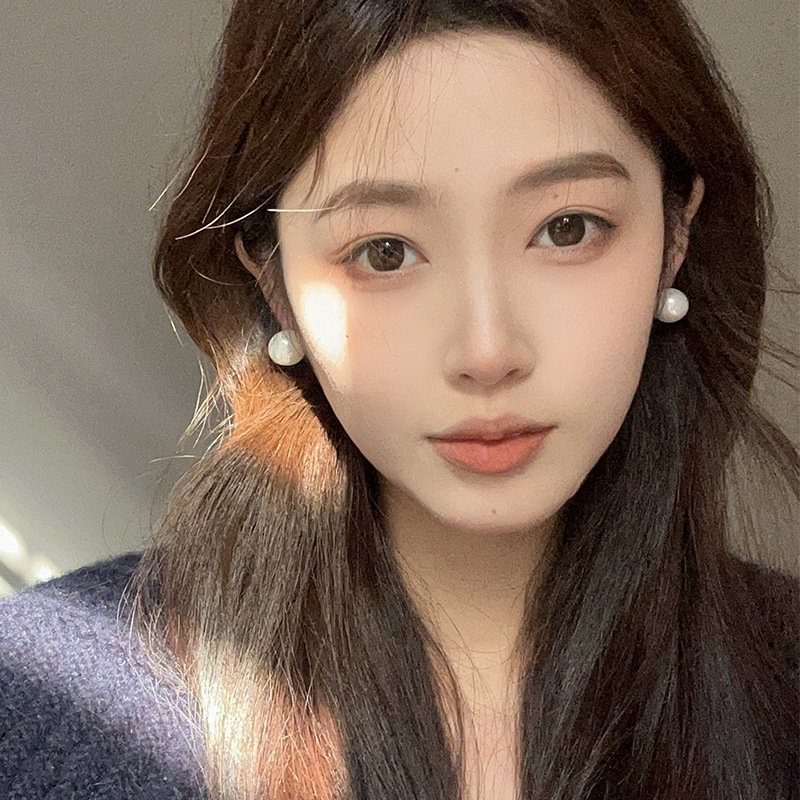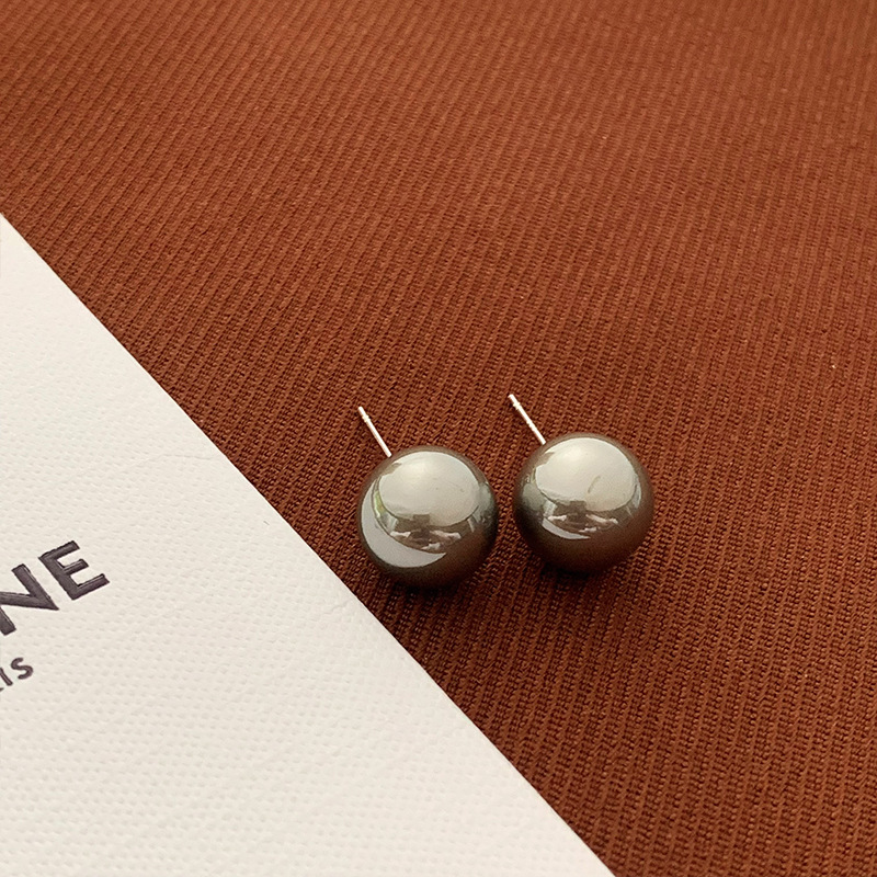 简约银灰色珍珠耳钉轻奢高级感气质小众耳环年新款耳饰女