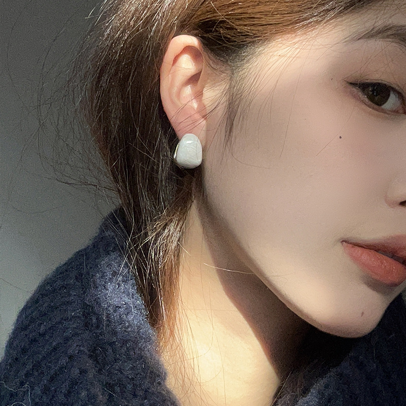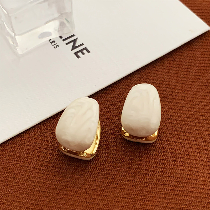 油画感耳环女气质小众设计高级感水滴耳钉法式复古奶白色耳饰耳坠