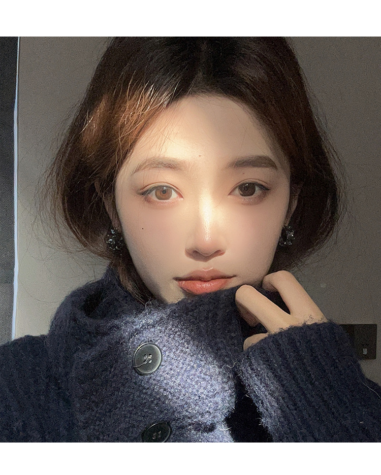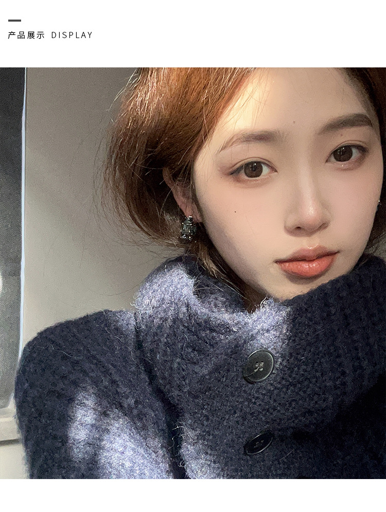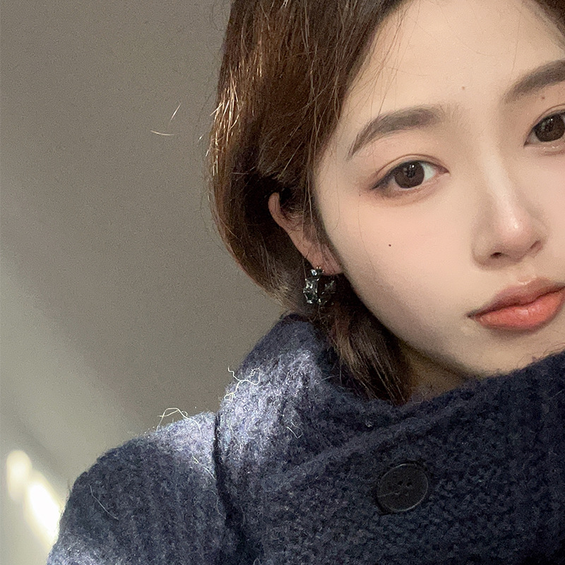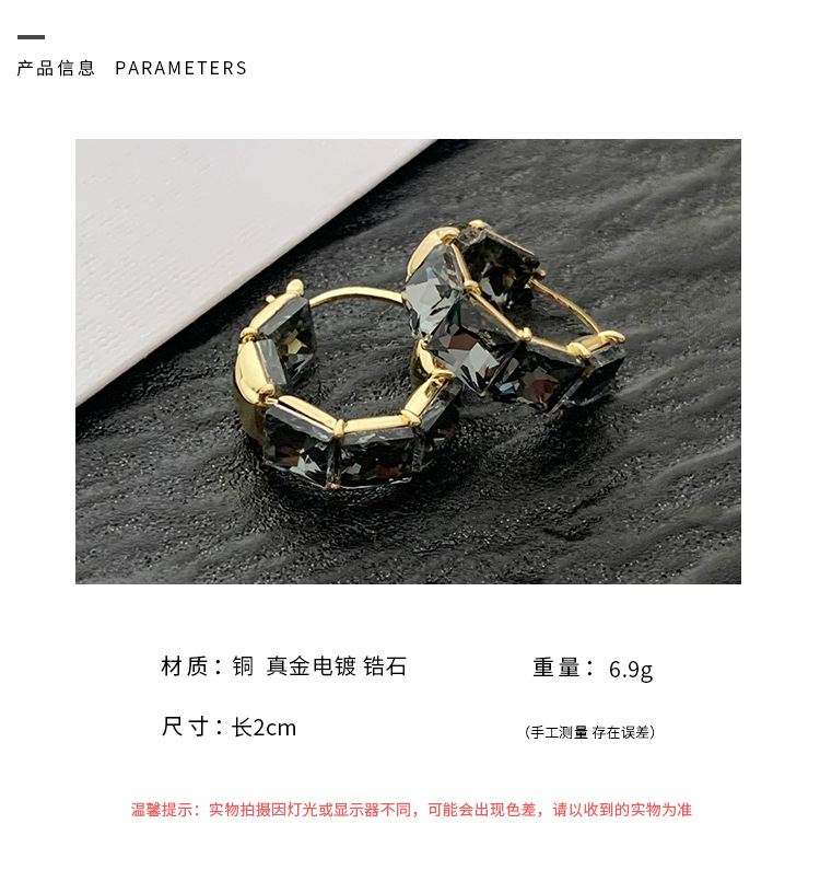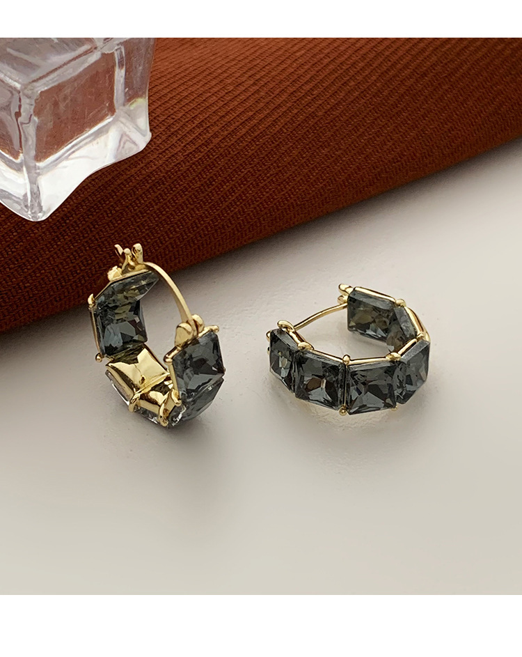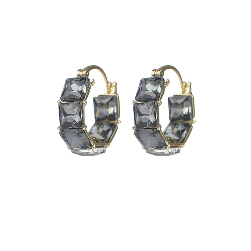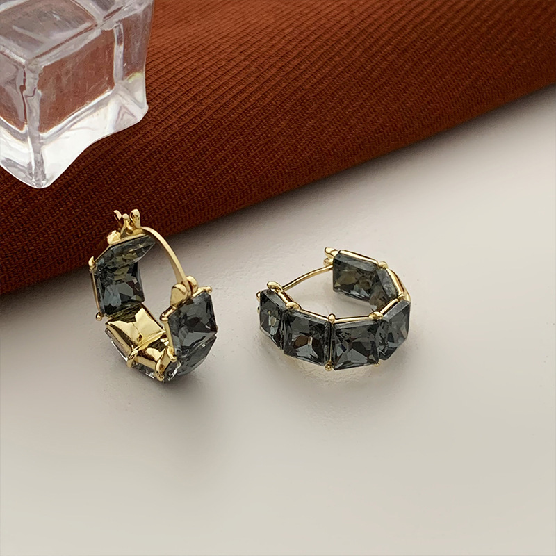 复古高级感灰色锆石耳环女 ins小众气质水晶耳圈耳扣个性轻奢耳饰