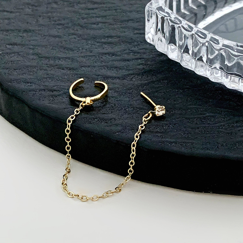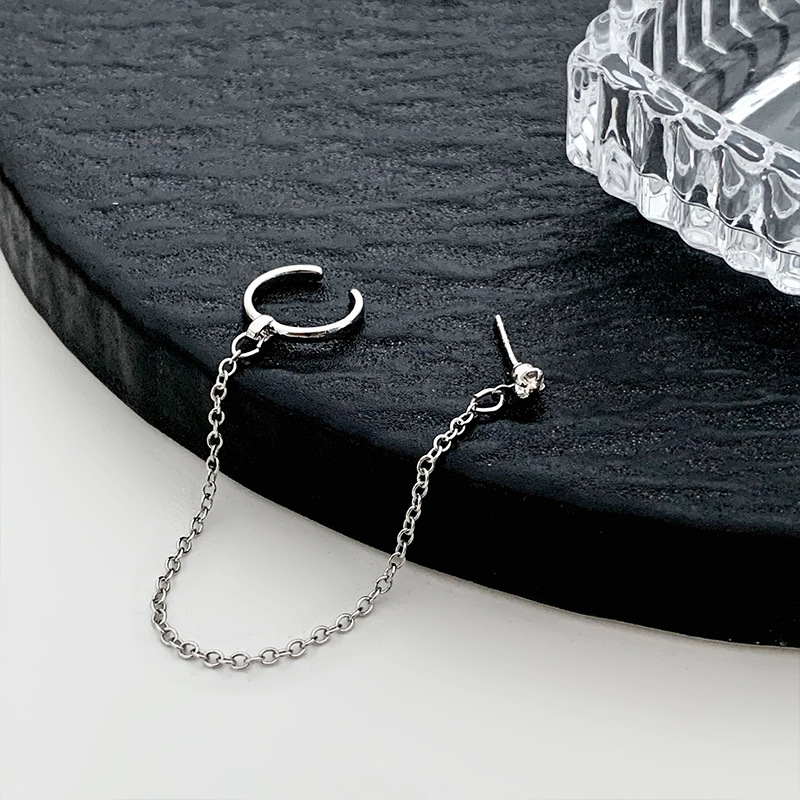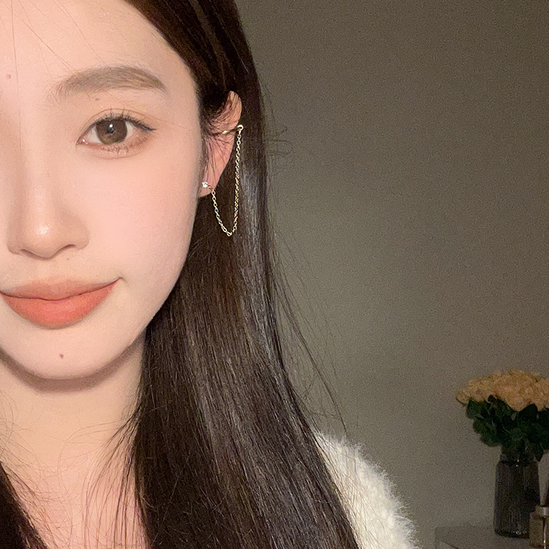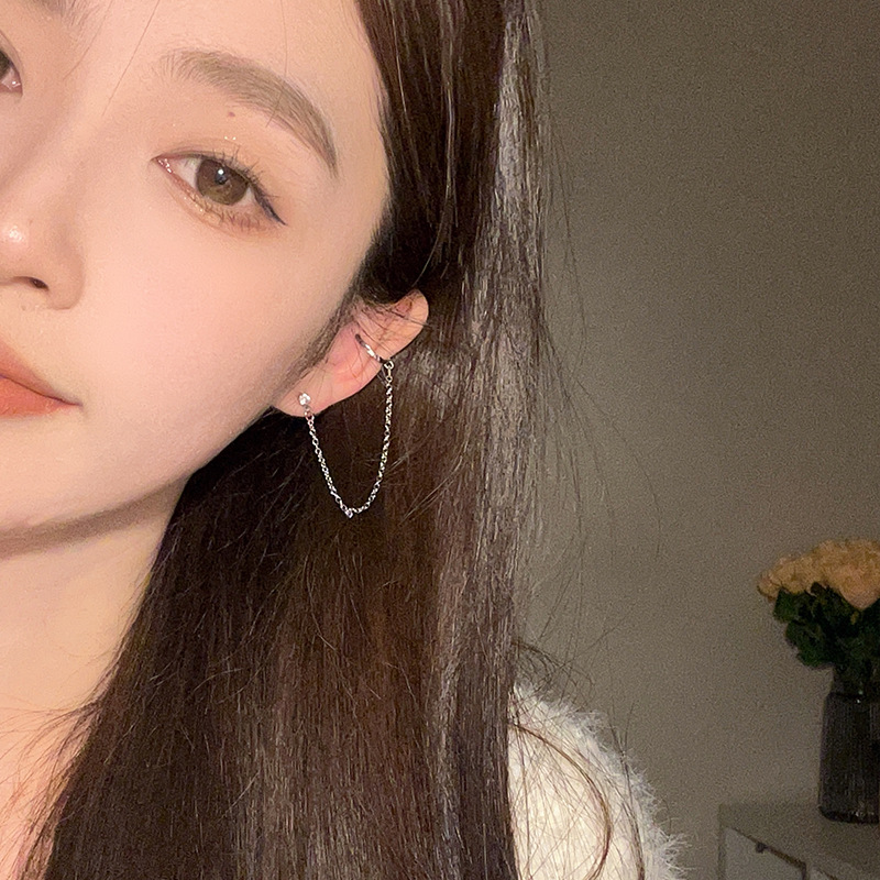 ins小众简约金属链条耳钉耳骨夹一体式 年新款百搭设计感耳饰