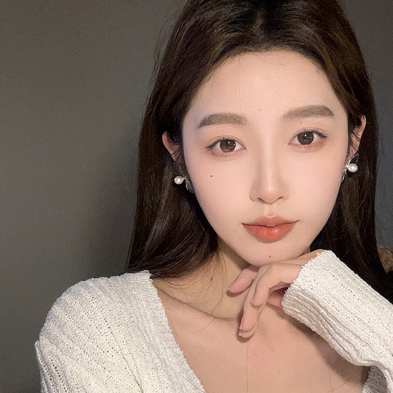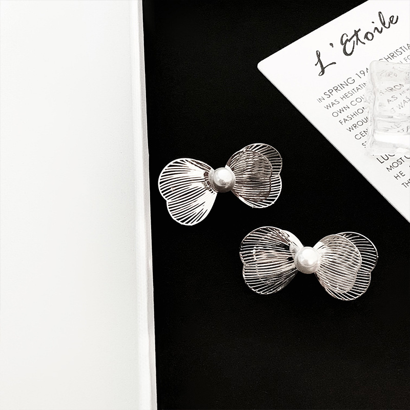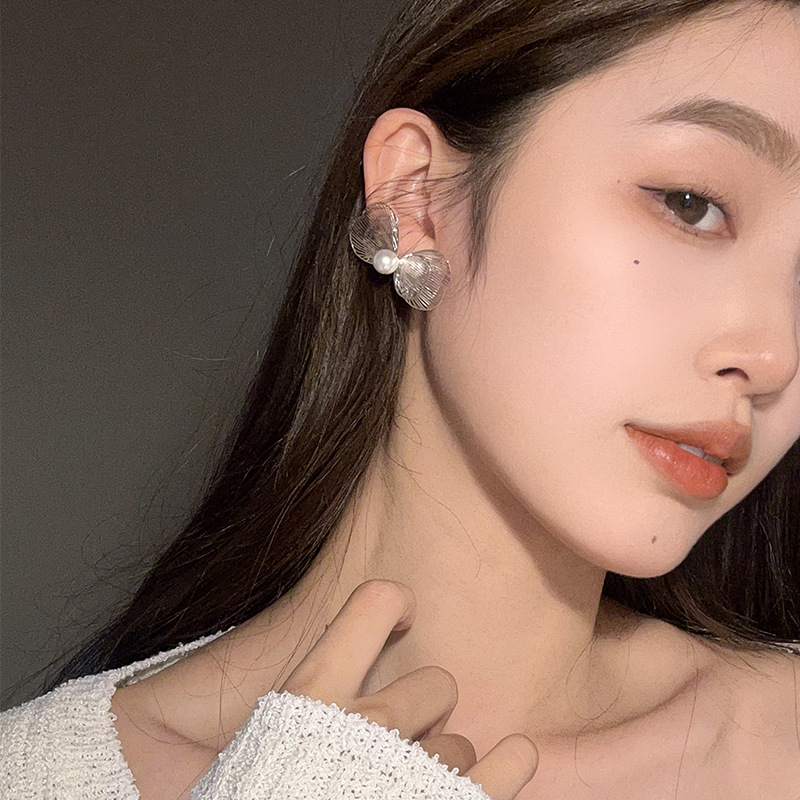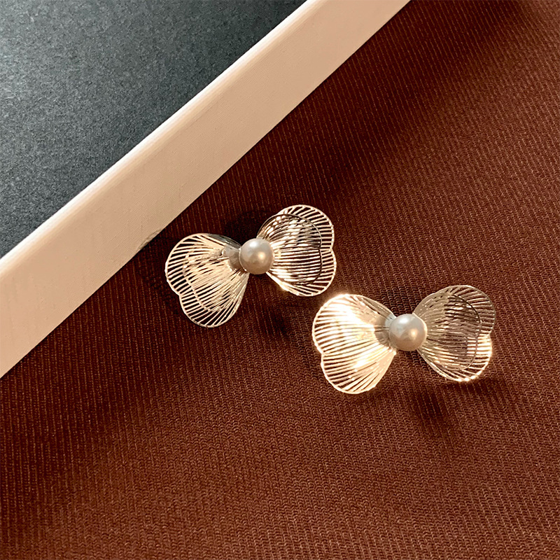 超仙法式金属蝴蝶结珍珠耳钉气质轻奢小众耳环简约百搭高级感耳饰