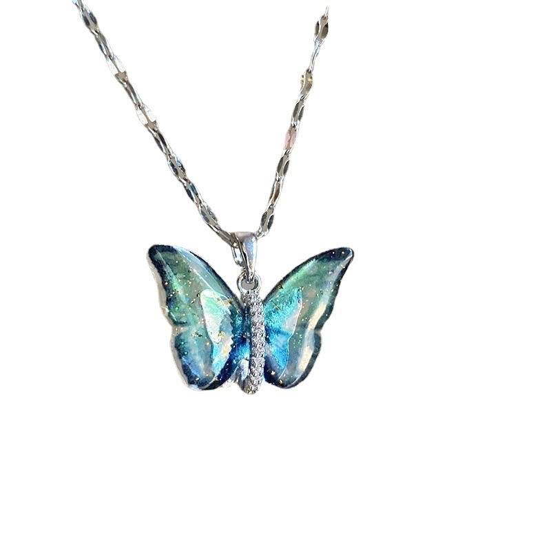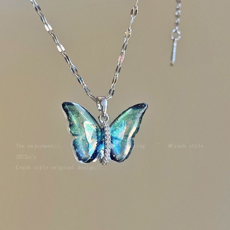 彩色蝴蝶吊坠锁骨链女高级设计感潮时尚个性配饰轻奢高级感项链女