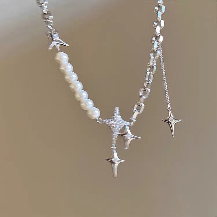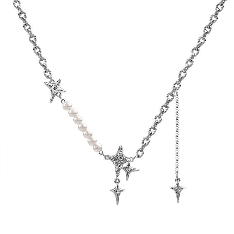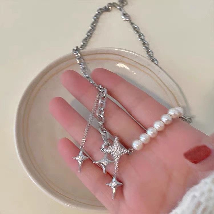 甜酷辣妹儿~满钻芒星珍珠项链女ins潮小众高级设计感锁骨链颈链女