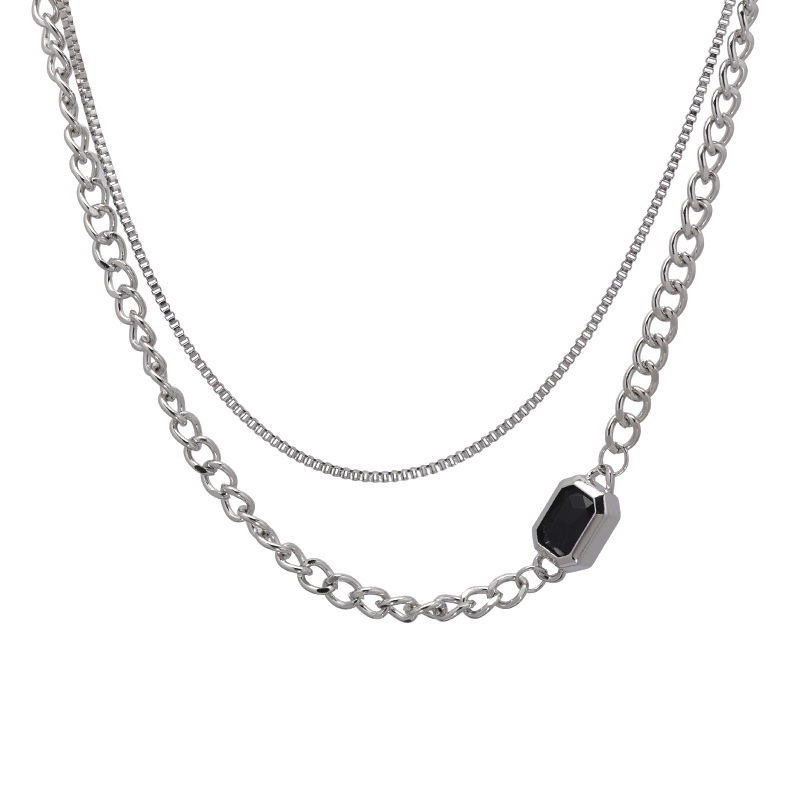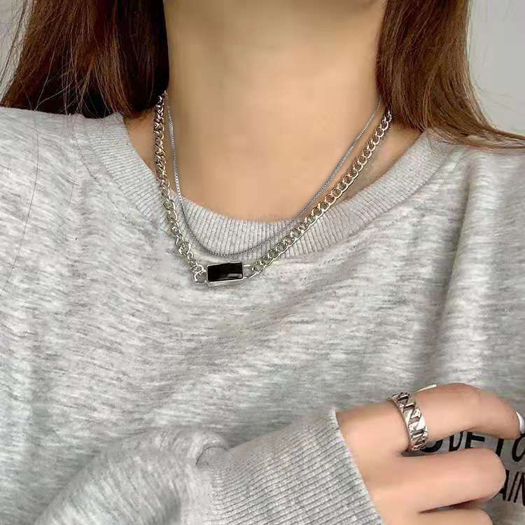 黑方块钛钢项链女夏轻奢小众锁骨链设计感嘻哈风吊坠双层颈链配饰
